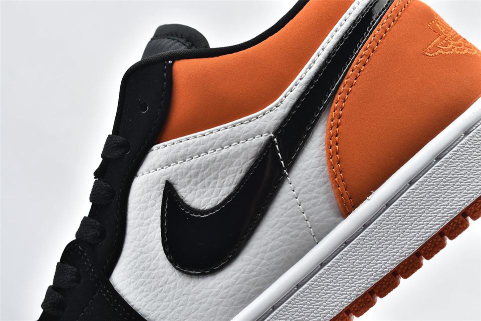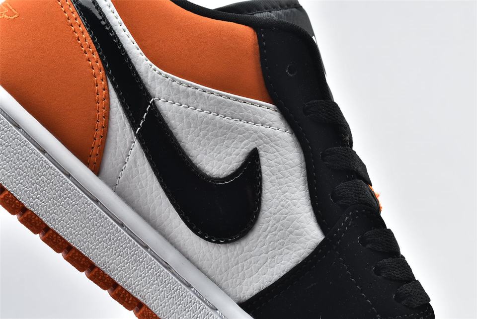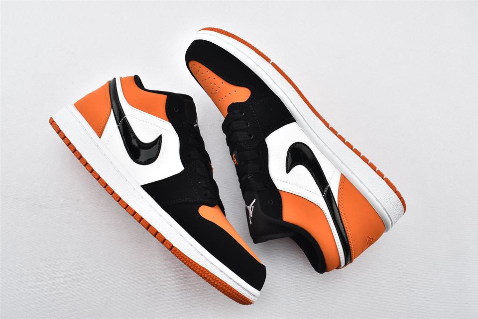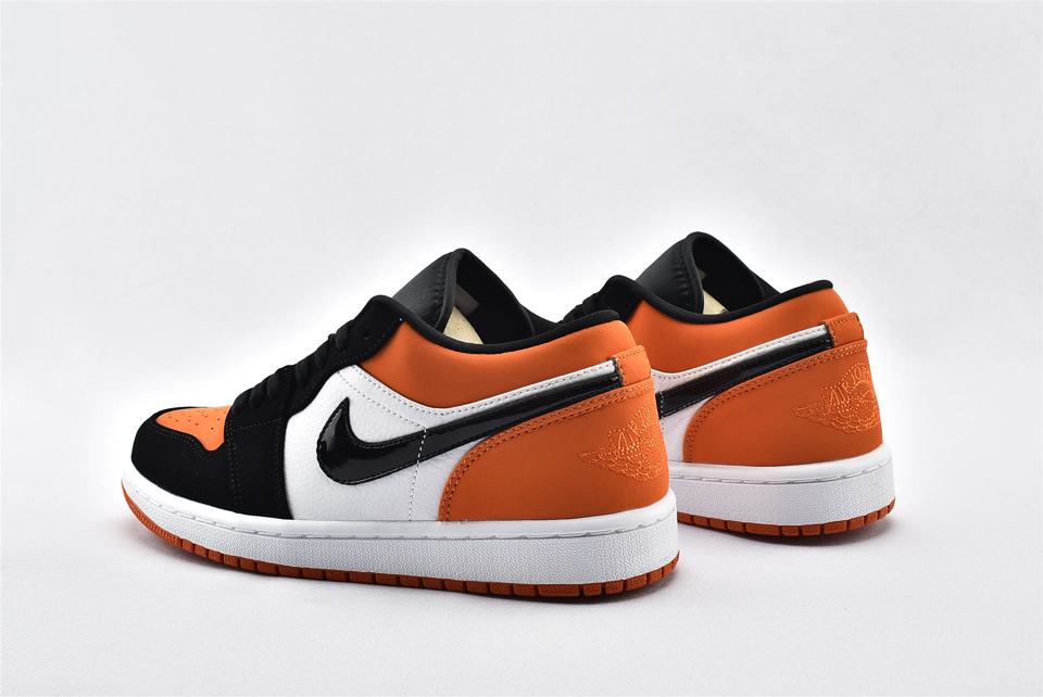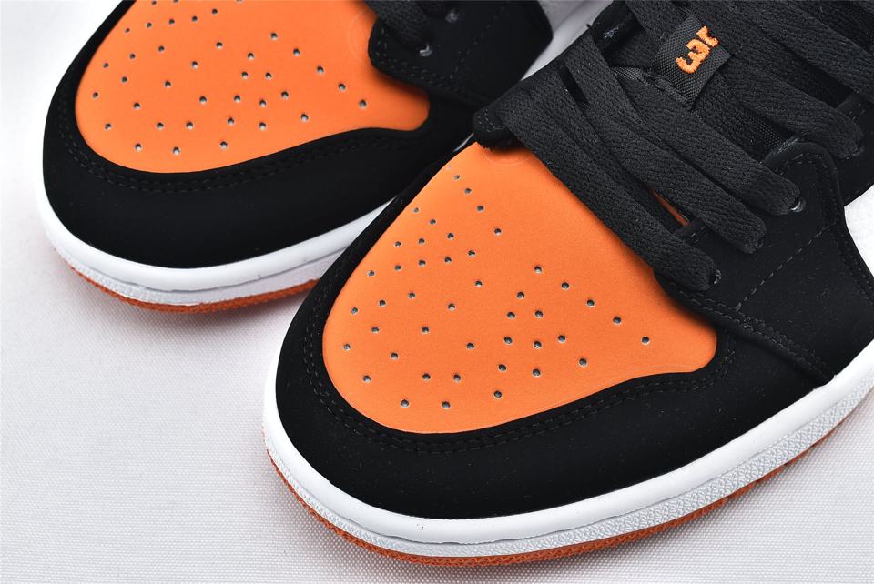 Кроссовки Air Jordan 1 Low Shattered Backboard демонстрируют классический силуэт, верх выполнен из оранжевой кожаной основы с черными и белыми накладками. Модель Jordan 1 Low имеет Nike Swoosh, символ Jumpman на нейлоновом язычке и логотип Jordan Wings, вышитый на пяточной части. Белая мидсоль с технологией Air и оранжевая подошва завершает дизайн.- Цвета: Starfish/Black-Sail