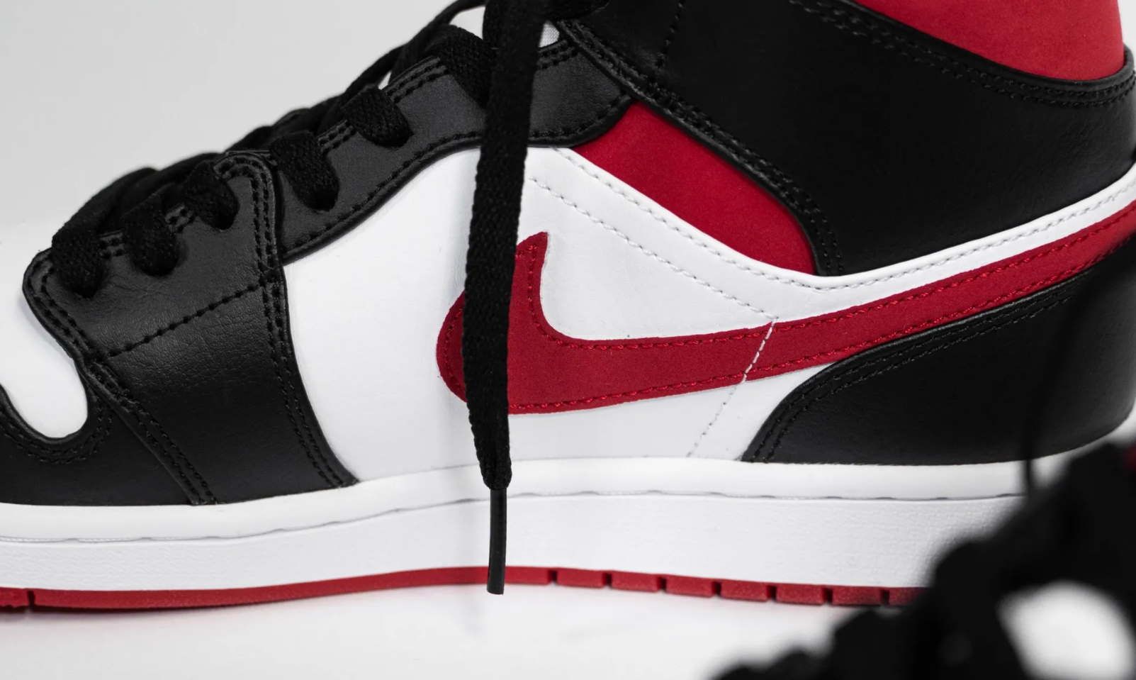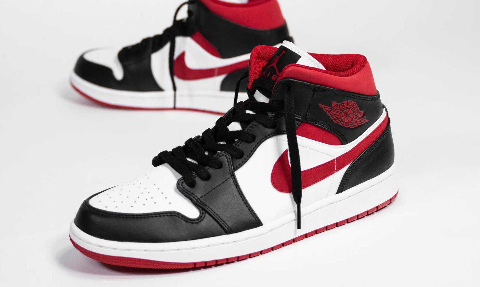 Цена Кроссовки Air Jordan 1 Mid Black Gym Red - оригинальные товары спортивных брендов в интернет-магазине Слэмданк.