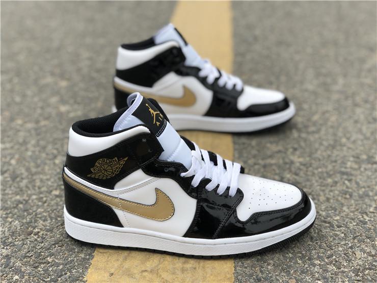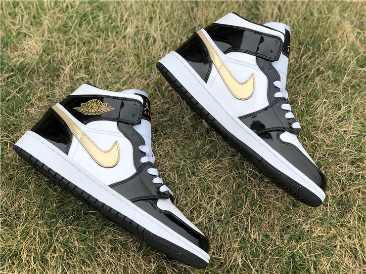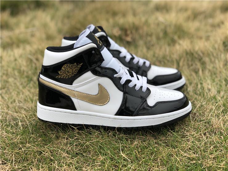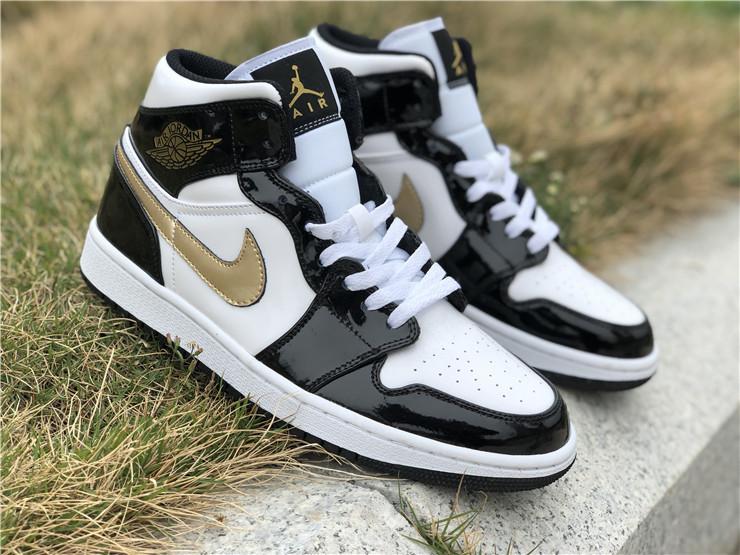 Заказать поиск кроссовок Air Jordan 1 Mid Patent Black Gold с бесплатной доставкой.