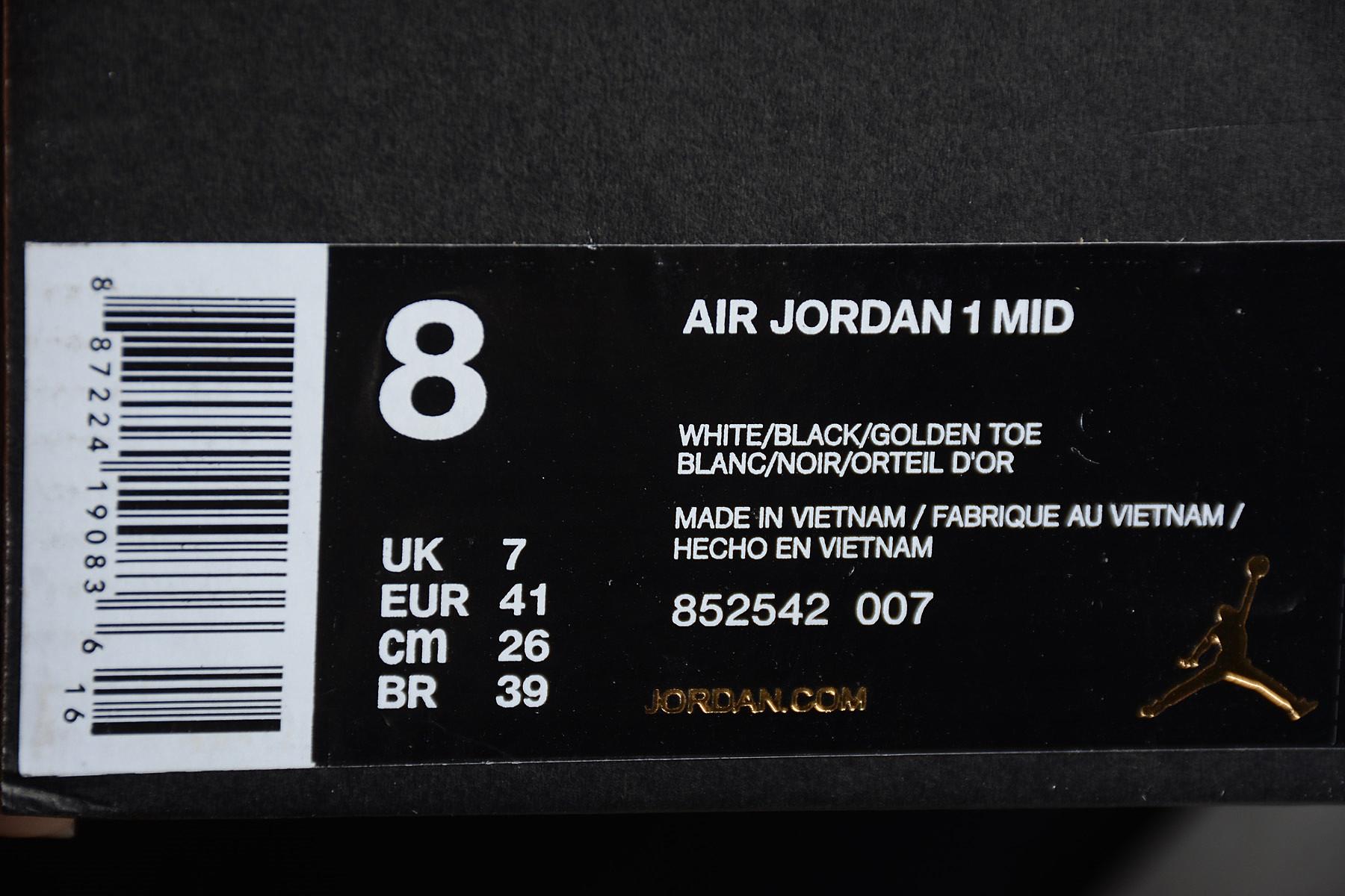Кроссовки Air Jordan 1 Mid Patent Black Gold купить оригинал - цена в Москве и России с бесплатной доставкой - артикул 852542-007