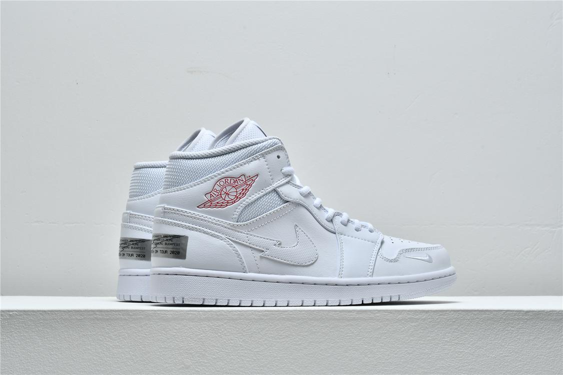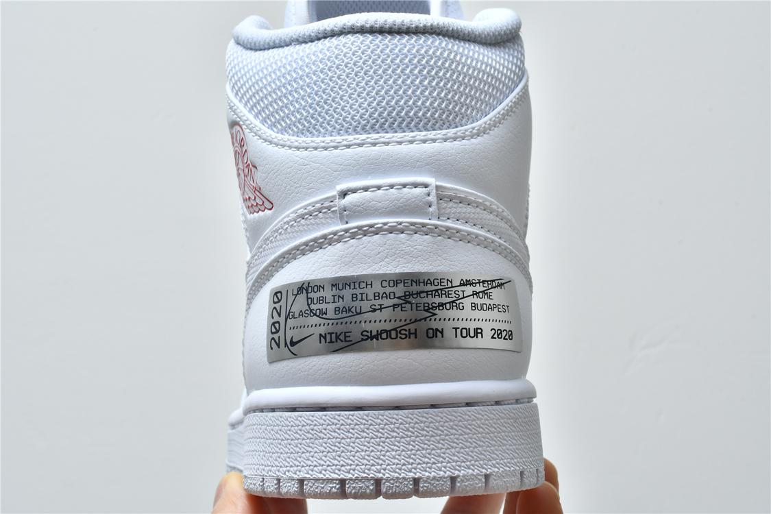 Air Jordan 1 Mid SE 'Euro Tour' демонстрирует тему путешествий, которая подчеркивает международный охват франшизы Jordan. Напечатанный красным цветом классический логотип Wings выделяется на белом кожаном фоне кроссовок. Дополнительный мини-логотип Swoosh вышит на передней части стопы, дополняя более крупный смещенный Swoosh одноименного белого цвета. Накладка на пятку украшена серебряным значком турне с указанием десяти европейских городов.- Цвета: White/White/Gym Red/White