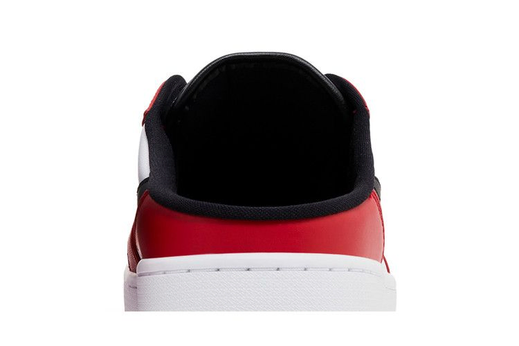 Модель Air Jordan 1 Mule Golf 'Chicago' демонстрирует классический стиль Jordan в радикально измененной конструкции. Верх кроссовок выполнен из гладкой кожи и имеет четкую белую основу с накладками Varsity Red и контрастным черным Swoosh. На черном кожаном язычке красуется брендинг Jumpman, а на носочной части - надпись "Jordan Golf". Подошва малинового цвета имеет интегрированный рисунок сцепления, основанный на оригинальных AJ1.