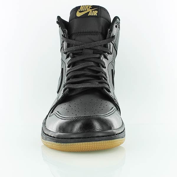 Кроссовки Nike Air Jordan 1 Retro 'Gum Bottom' имеют однотонный черный верх из премиальной кожи с подошвой цвета жвачки. Кроссовки выпущены в декабре 2014 года и имеют золотой логотип Nike Air на язычке.