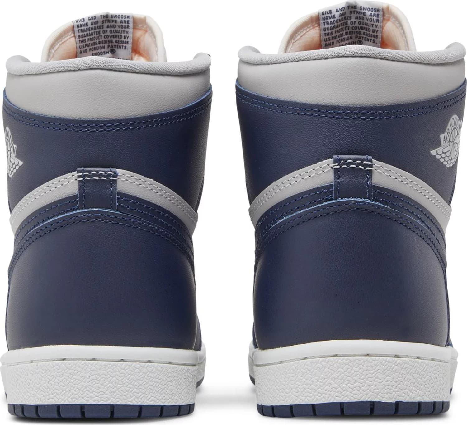 Возрожденные с учетом наследия, Air Jordan 1 Retro High '85 "Georgetown" имеют знакомый двухцветный дизайн, посвященный 40-й годовщине победного броска Майкла Джордана в матче против "Хойас" 29 марта 1982 года. Верхняя часть из цельной кожи имеет светло-серую основу с контрастными накладками цвета College Navy. Плетеная бирка Nike Air украшает нейлоновый язычок, а ретро-логотип Wings нанесен на боковую лодыжку. Высокие кроссовки установлены на традиционную резиновую подошву, а в пятку вмонтирован блок Air-sole из легкого полиуретана.