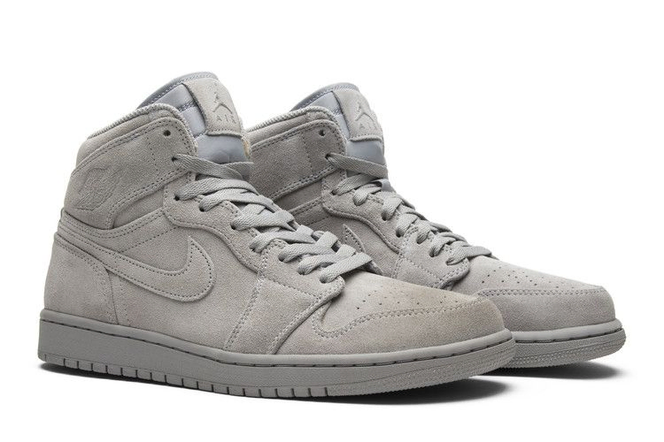 Модель Nike Air Jordan 1 Retro High "Grey Suede" сочетает в себе верх из замши цвета Wolf Grey с более светлым оттенком серого на нейлоновом язычке, шнурках и подкладке. Выпущенные в апреле 2017 года, они также имеют брендинг Jumpman и серую тональную подошву.
