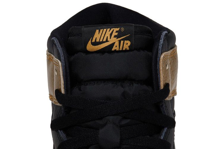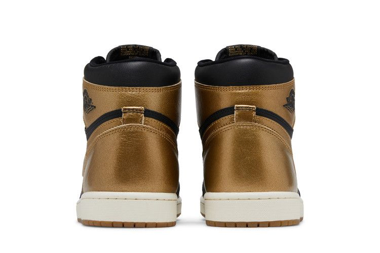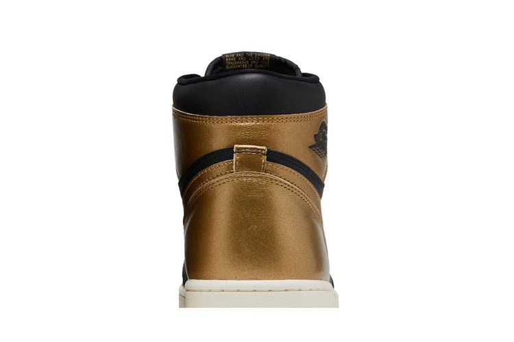 Модель Air Jordan 1 Retro High OG "Black Metallic Gold" выполнена из черной кожи с контрастными золотистыми акцентами на мыске, пятке и щиколотке, а также украшена знаковым логотипом Wing на боковой стороне. Плетеная бирка Nike Air украшает черный нейлоновый язычок. Белая резиновая межподошва с подошвой Air-sole, заключенной в легкую полиуретановую танкетку. Подошва из резины обеспечивает надежное сцепление с поверхностью.