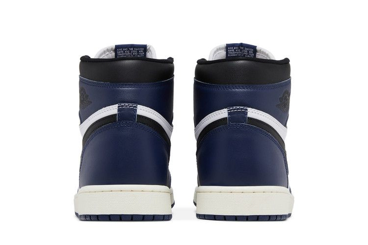 Модель Air Jordan 1 Retro High OG "Midnight Navy" выполнена из гладкой кожи, сочетающей белую основу с контрастными темно-синими акцентами на носочной части, пятке и щиколотке. Фирменный логотип Swoosh выполнен в черном цвете и сочетается с высоким мягким воротником и тисненым логотипом Wings. Плетеная бирка Nike Air украшает язычок из воздухопроницаемого нейлона. Кроссовки установлены на резиновую подошву с винтажными боковинами и подошвой темно-синего цвета.