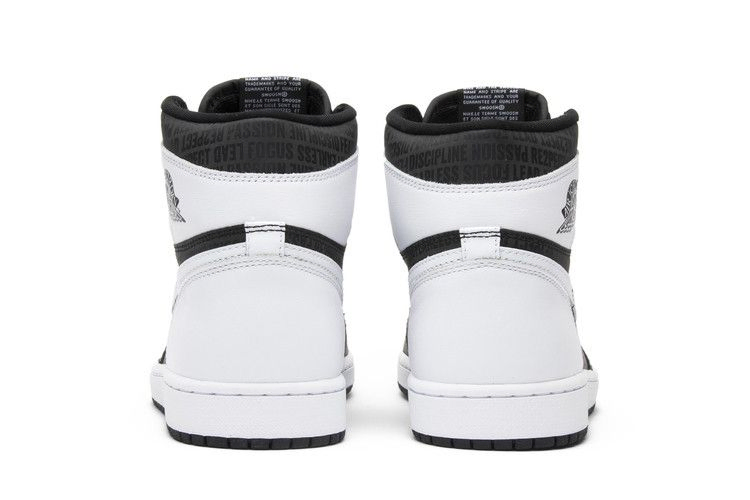 Кроссовки Air Jordan 1 Retro High OG 'RE2PECT' вышли в 2017 году, украшенные скрытыми посланиями и смелой черно-белой расцветкой. Черно-белый верх кроссовка украшен такими словами, как "Fearless", "Passion", "Focus" и "Lead", напечатанными на черной панели кроссовка в виде тонального текста, который проявляется при попадании света. Хрустящие белые нотки на Swoosh, заднике и промежуточной подошве добавляют модный штрих к культовым кроссовкам.
