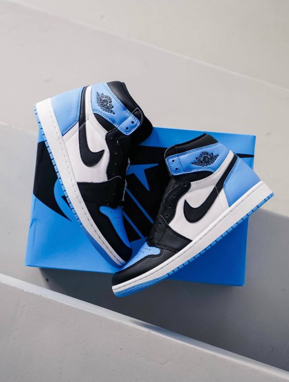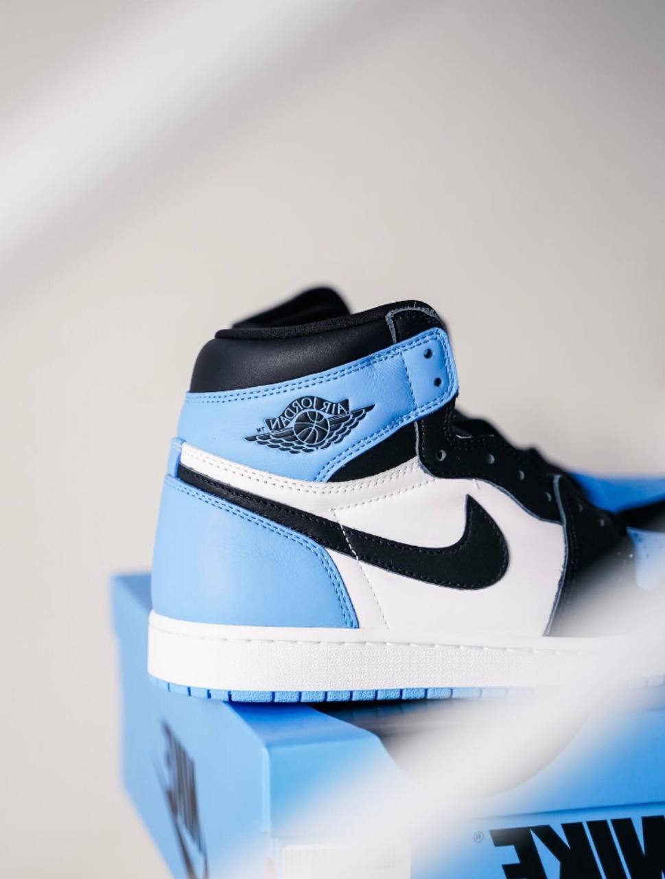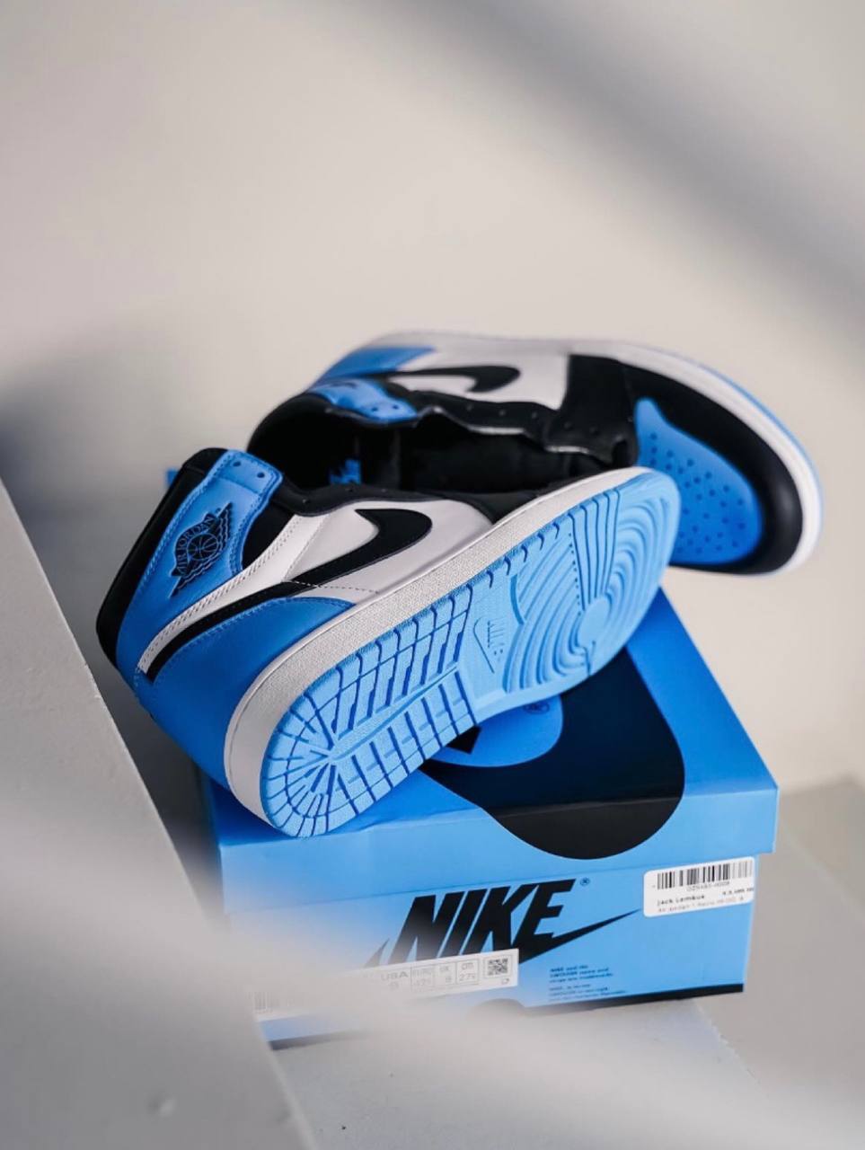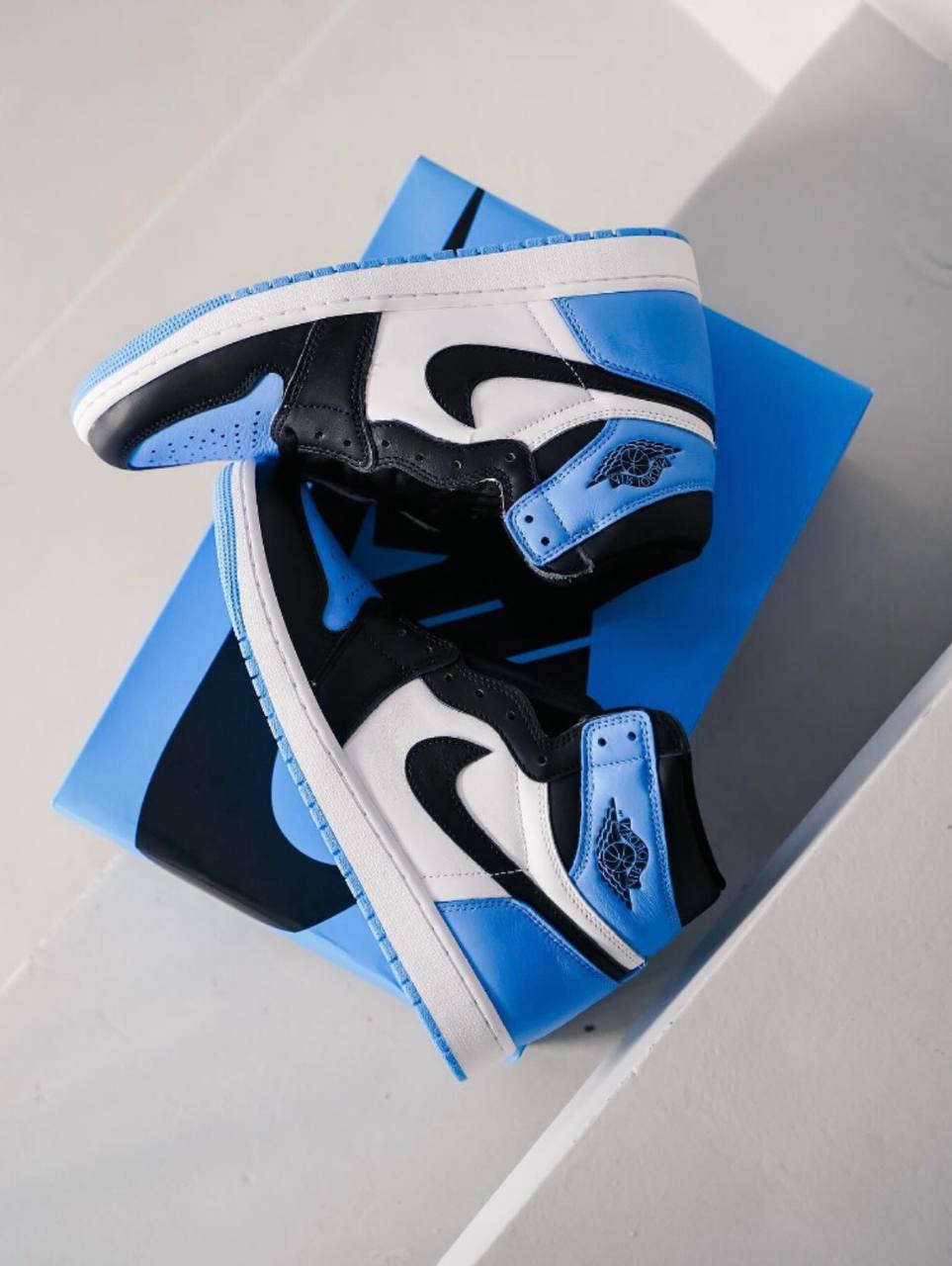 Вдохновленные альма-матер Майкла Джордана, Air Jordan 1 Retro High OG 'UNC Toe' возвращают отличительную цветовую схему, которая первоначально присутствовала на модели AJ1 'Bred Toe' 2018 года. Верхняя часть кроссовок полностью выполнена из кожи с белыми панелями и контрастными черными вставками на фирменном логотипе Swoosh и накладке на передней части стопы. На носочной части, пятке и воротнике присутствуют акценты синего цвета, а на боковой стороне расположен ретро-логотип Wings. Плетеная бирка Nike на воздухопроницаемом нейлоновом язычке придает стилистику OG. Легкая амортизация обеспечивается белой резиновой подошвой с блоком Air-sole в пятке, заключенным в полиуретановую танкетку. Подошва из синей резины обеспечивает надежное сцепление с поверхностью при каждом шаге.