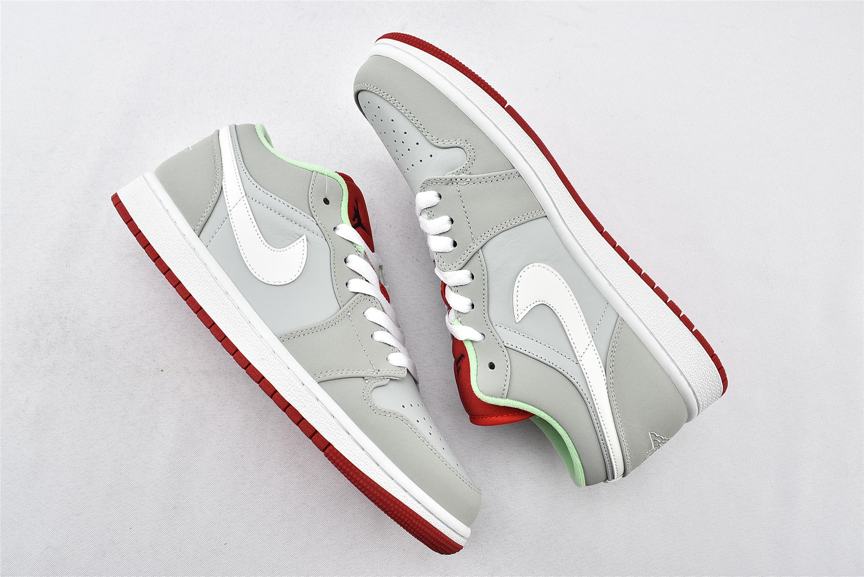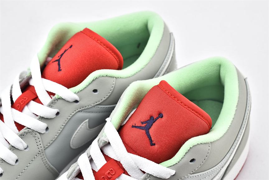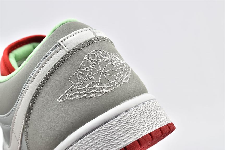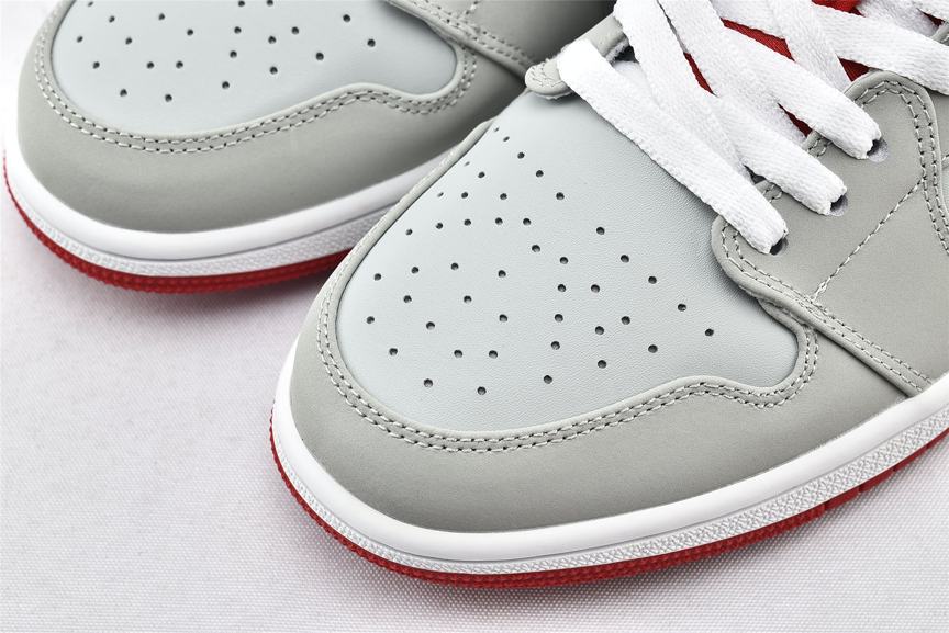 Кроссовки Air Jordan 1 Retro Low Hare - это обновленная версия классического стиля, выполнена в сером нубуковом верхе с белыми акцентами на Nike Swoosh и шнурках. Модель Air Jordan 1 Low имеет символ Jumpman на ярко красном языке, логотип Jordan Wings на пяточной части и мятно-зеленого цвета отделку воротничка. Белая мидсоль с технологией Air и красная подошва с протектором завершают дизайн.- Цвета: Grey Mist/University Red-Light Poison
