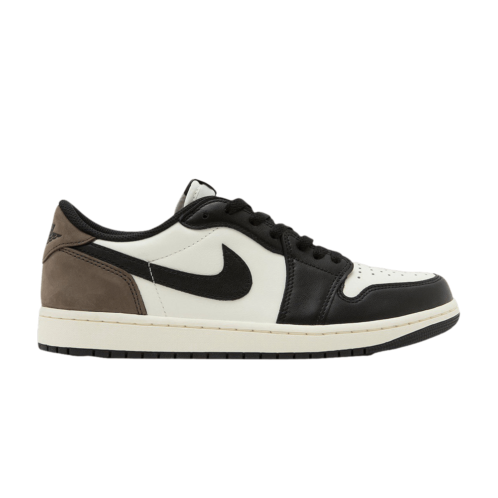 Модель Air Jordan 1 Retro Low OG "Mocha" имеет белый кожаный верх с контрастными черными акцентами на носочной части и Swoosh. Коричневый нубук покрывает накладку на пятку и задник, на котором красуется черный логотип Wings. Брендинг Nike Air украшает тканый язычок и носок. Межподошва выполнена в белом цвете и снабжена амортизирующей подошвой Air, а подошва выполнена из черной резины.