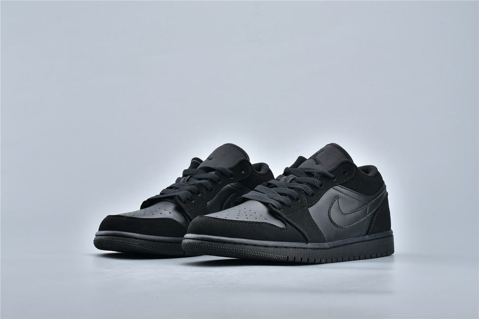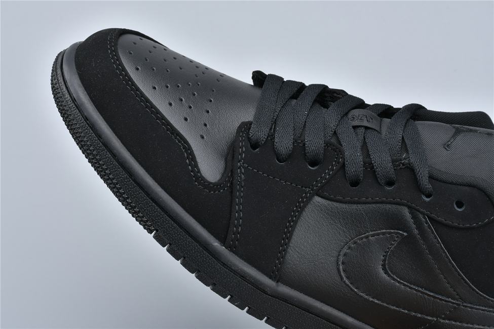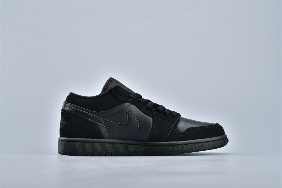 Кроссовки Air Jordan 1 Retro Low Triple Black демонстрируют классический силуэт. Верх выполнен из черной гладкой кожи с черными замшевыми накладками. Модель Jordan 1 Low имеет  Nike Swoosh, символ Jumpman на нейлоновом язычке и логотип Jordan Wings на пяточной части. Мидсоль с технологией Air и подошва черного цвета завершают дизайн.