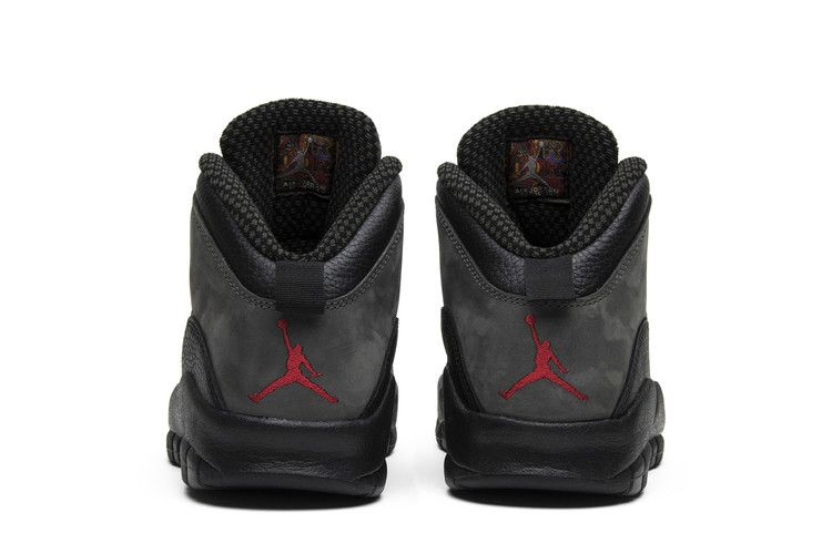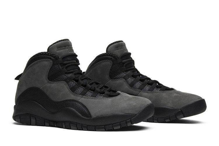 Air Jordan 10 "Shadow" стали настоящим ретро, напоминающим оригинал 1994 года. Модель выполнена из нубука Dark Shadow и черной галтованной кожи, имеет черную промежуточную подошву, красные акценты на логотипе Jumpman на пятке и подошве. Единственный раз эта расцветка появилась в 2008 году в комплекте Countdown Pack с Air Jordan 13. Эта версия отличалась вышивкой "23" на боковом профиле и совершенно другим оттенком серого.
