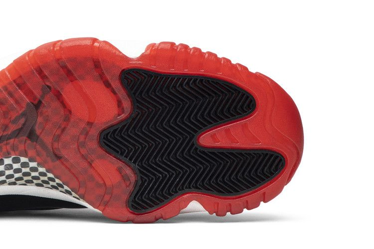 Используя культовые черные, белые и красные цвета команды Chicago Bulls, Air Jordan 11 превращает их в классический оригинальный цвет AJ11, который носил Майкл Джордан, когда выиграл свой четвертый титул чемпиона НБА в составе Chicago Bulls. Черный цвет составляет большую часть верха, включая лакированные кожаные брызговики, а красный ограничивается брендингом. Белая промежуточная подошва ведет к полупрозрачной подошве True Red, которая разделена черными секциями "елочки" на носке и пятке.