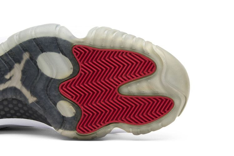 Созданные по просьбе самого Джордана, кроссовки Air Jordan 11 Low, ориентированные на стиль жизни, стали желанными сами по себе. Модель Air Jordan 11 Retro Low "Tuxedo", разработанная как продолжение культовой расцветки "Concord", меняет цвета верха и представляет собой однотонный черный низкий верх с обтяжкой из лакированной кожи белого цвета. Брендинговые элементы включают надпись и логотип Jumpman на язычке, логотип Jumpman на пятке и надпись "23" на пятке, выделенную красным цветом.