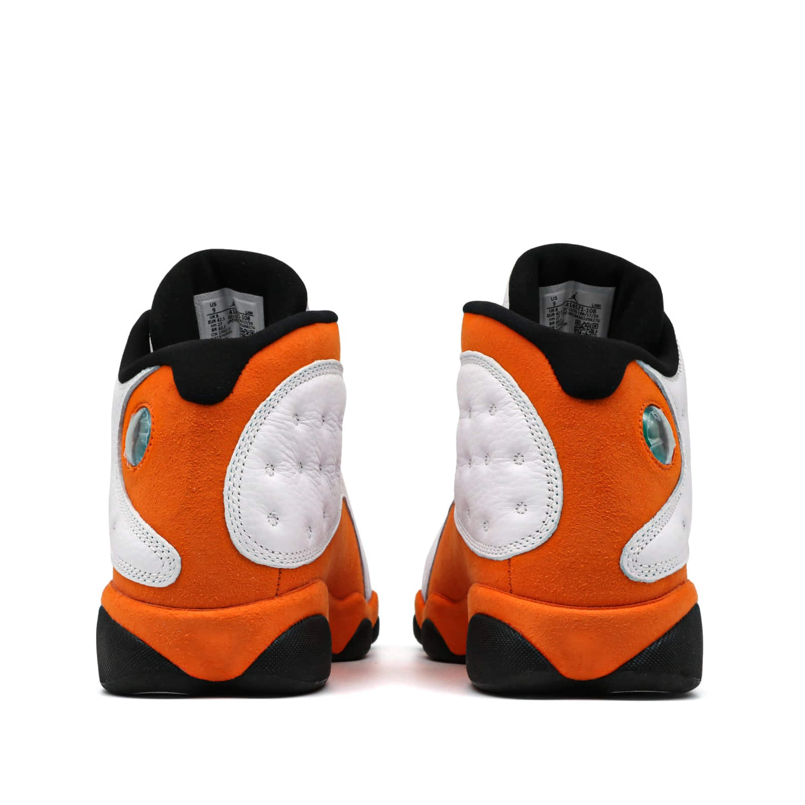 Air Jordan 13 Retro «Starfish» имеет знакомую цветовую палитру, которая напоминает выпуски «Shattered Backboard» модели Air Jordan 1. Верх сочетает в себе белую стеганую кожаную основу с оранжевыми замшевыми вставками и фирменные накладки с ямочками из белой кожи. Традиционные элементы брендинга включают в себя вышитый Jumpman на язычке и голографический кошачий глаз на щиколотке. Подошва в виде лапы пантеры выполнена в контрастном черном цвете.- Цвета: White/Black/Starfish
