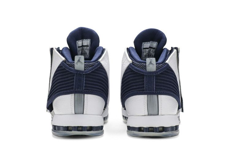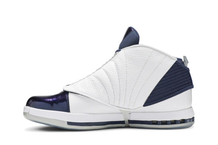 Сочетая в себе элементы прошлых моделей Air Jordans, Air Jordan 16 Midnight Navy появились в магазинах в 2001 году с намерением носить их на корте и вне его. Уникальная обманка, вдохновленная шлепанцами XIX века, служит стильным элементом уличной одежды, а сочетание амортизации Zoom Air и Nike Air обеспечивает комфортное ношение на корте. После выпуска в 2001 году Air Jordan 16 "Midnight Navy" впервые появились в ретро-версии только в 2016 году. Чтобы подчеркнуть место Air Jordan 16 в наследии Джордана, на дизайне присутствует фирменный знак Jordan, состоящий из шестнадцати точек и черточек.- Модель: Кроссовки Air Jordan 16