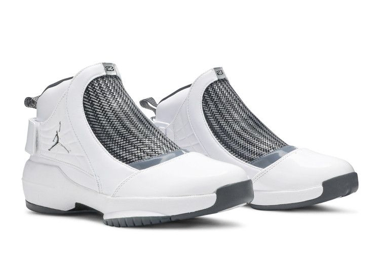 Модель Air Jordan 19 Retro "Flint Grey", выпущенная в январе 2019 года, повторяет расцветку OG 2004 года. Модель выполнена в соответствии с оригиналом и имеет характерный дизайн, вдохновленный ядовитой африканской змеей. Верхняя часть отличается белой лакированной кожей и плетеным рукавом Tech Flex, а подошва состоит из легкой межподошвы из пеноматериала Phylon со встроенной амортизацией Zoom Air.