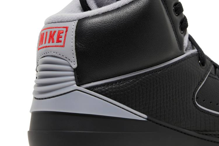 Модель Air Jordan 2 Retro "Black Cement" позаимствовала у культовой модели AJ3 цвета OG. Созданные в соответствии с оригинальными характеристиками силуэта 1986 года, вторые фирменные кроссовки Майкла Джордана имеют верх из черной кожи с тональной накладкой в средней части стопы, отделанной характерной текстурой ящерицы, и серыми вставками. На пятке и язычке с логотипом Wings, выполненным в огненно-красном цвете, имеются соответствующие акценты цвета цементного серого. Кроссовки установлены на белую полиуретановую промежуточную подошву, снабженную амортизирующим материалом Air, и поддерживаются прочной двухцветной резиновой подошвой.