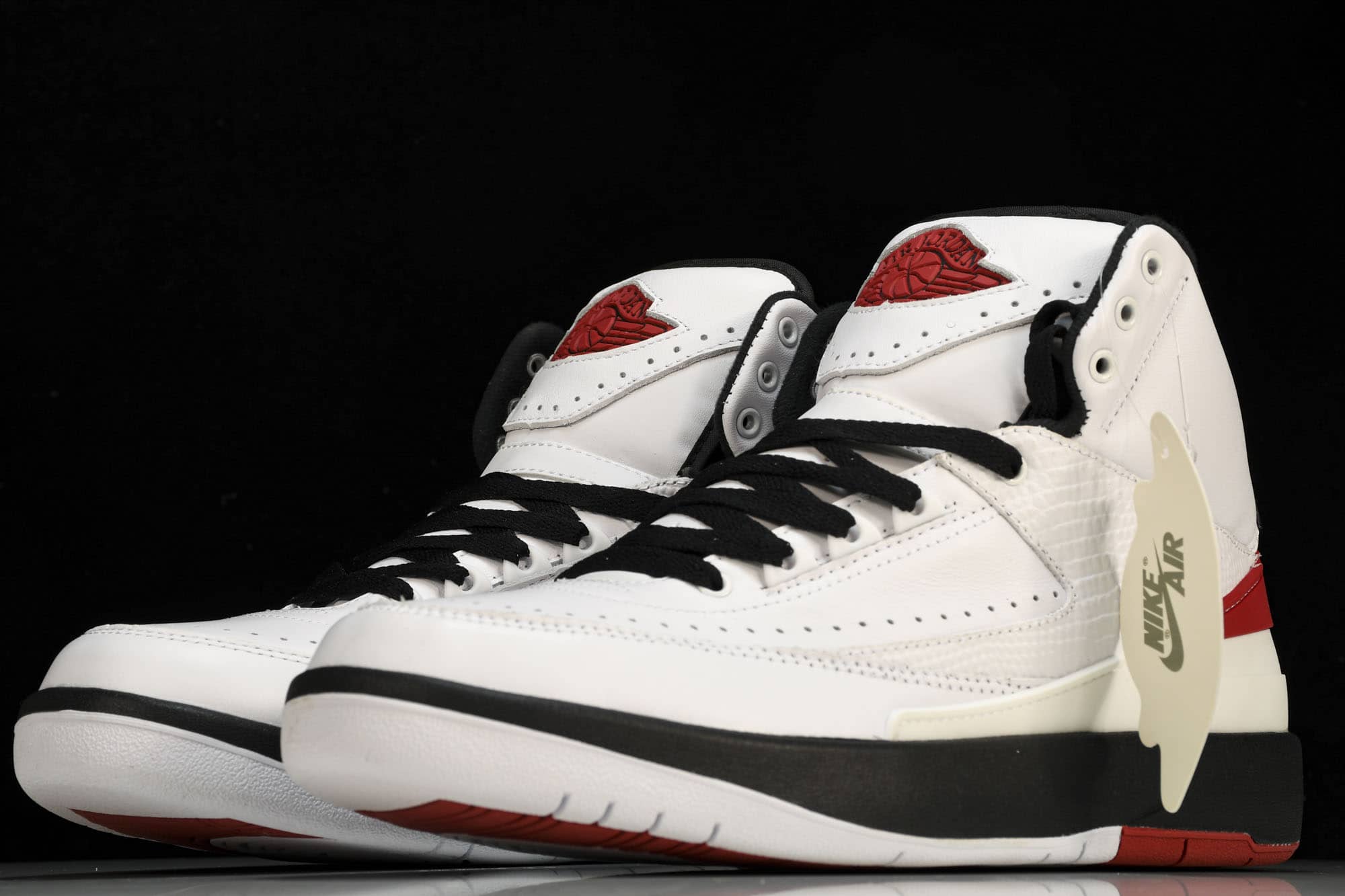 Выпуск 2022 года Air Jordan 2 Retro "Chicago" возвращает унаследованный силуэт в его оригинальной форме 1986 года. Радикально отличаясь по дизайну от своих предшественников, кроссовки отказались от логотипа Nike Swoosh, а на язычке появился логотип Jordan 'Wings'. Черные шнурки фиксируют белый кожаный верх с изящными линиями, перфорированными деталями и накладкой из искусственной кожи ящерицы, вдохновленной роскошной обувью. Малиновая стойка пятки придает контрастный оттенок, а логотип Nike украшает задний воротник. Традиционная подошва заменена черной полиуретановой промежуточной подошвой с амортизацией Air-sole.- Цвета: White/Varsity Red/Black