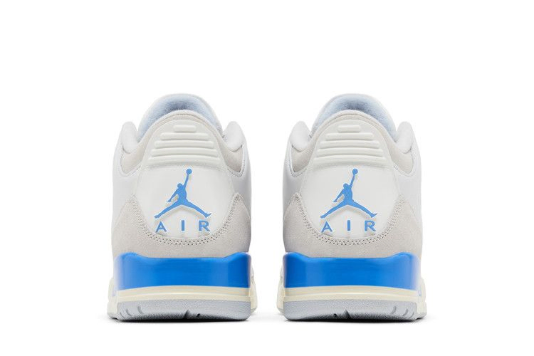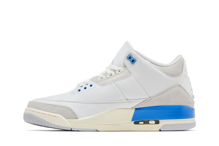 Модель Air Jordan 3 Retro 'Lucky Shorts' вдохновлена шортами UNC, которые Майкл Джордан надевал под форму Chicago Bulls во время игр. Силуэт выполнен из белой кожи с серыми замшевыми накладками на носочной и пяточной частях. Пудрово-синие люверсы сочетаются с брендингом Jumpman на язычке и пятке. Дополнительный синий оттенок украшает пятку на белой полиуретановой подошве, которая снабжена амортизацией Air-sole и укреплена серой резиновой подошвой.- Артикул: CT8532-101