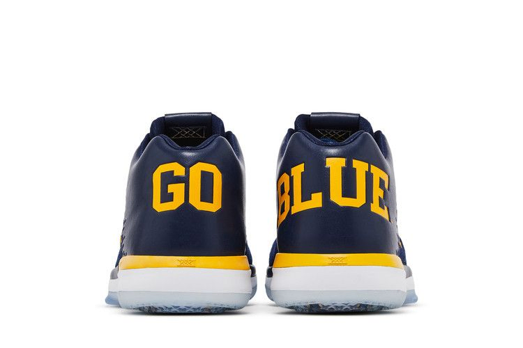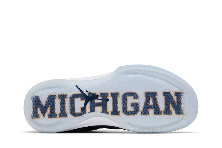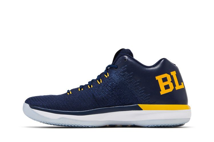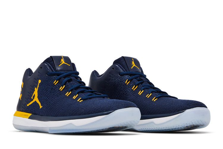 Эта модель Air Jordan 31 Low, выпущенная Университетом Мичигана, вышла в марте 2017 года, как раз к Мартовскому безумию. Низкие кроссовки выполнены из комбинированной сетки и кожи в темно-синем цвете и украшены желтым логотипом Jumpman, тросами Flywire и надписью 'GO BLUE' на левой и правой пятках. Под ледяной полупрозрачной подошвой виднеется надпись "MICHIGAN".