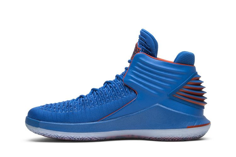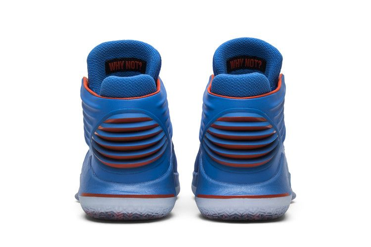 В 2017 году баскетболист "Оклахома-Сити Тандер" Рассел Уэстбрук получил собственную фирменную обувь в честь своего статуса MVP. Модель Air Jordan 32 "Russell Westbrook" выполнена в цвете Photo Blue Flyknit с оранжевыми акцентами на пятке, боковой подкладке и брендинге. Кроссовки также имеют мягкую подкладку на лодыжке для плотной посадки и надпись на полупрозрачной подошве и стельке "Why Not?".