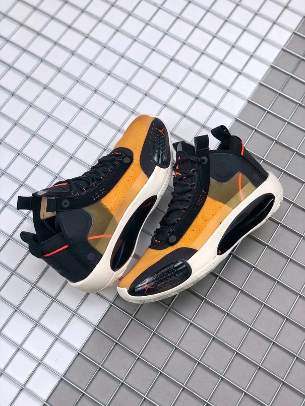 Модель Air Jordan 34 Amber Rise была выпущена в конце ноября 2019 года с полупрозрачным слоем TPE, подчеркивающим оранжевый, серый и черный цвета. Обновленный логотип Jordan находится на пятке, а также имеется номер 23, представленный азбукой Морзе. Надпись «30-летие AJ4» имеется на подошве. Одни из самых легких кроссовок Jordan, они включает в себя урезанный верх и легкую пластину Eclipse, которая соединяет два блока Zoom Air.