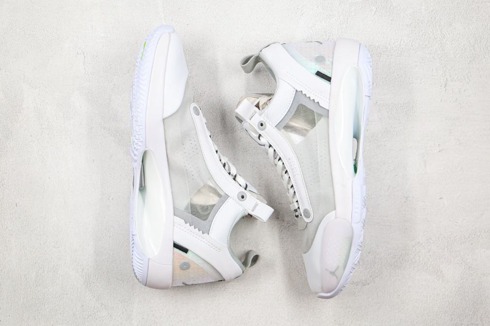 Заказать поиск кроссовок Air Jordan 34 Low PF Pure Money с бесплатной доставкой. Модель Air Jordan 34 Low PF Pure Money с очень прочной резиновой подошвой, предназначенной для открытых кортов, отличается первозданной цветовой гаммой, вдохновленной классической белой моделью Air Jordan 4 2006 года. Эта модель с низким верхом практически не изменилась за исключением открытого мягкого воротника, подноска из синтетической кожи и измененной вставки на пятке. Яркие цвета Electric Green в основном скрыты, они появляются на стельке и резиновой подошве.