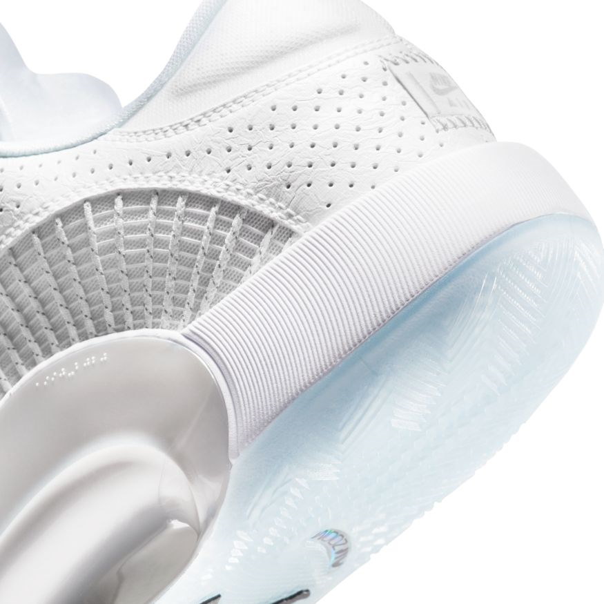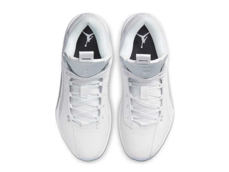 Air Jordan 35 Low White Metallic Silver представляет собой дебютную расцветку силуэта, напоминающую модель Air Jordan 5 по случаю ее 30-летия. Кроссовки украшены рядом традиционных деталей, включая накладку из замши, логотип «23» на пятке и язычок, смоделированный по образцу AJ5. Система Flightwire размещена на клетке Kurim для надежной фиксации. Мидсоль обновлена ​​за счет увеличенной пластины Eclipse Plate 2.0 с видимой амортизацией Zoom Air в области пятки и передней части стопы.