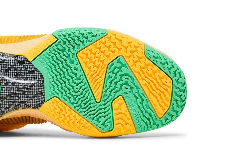 Air Jordan 37 Low 'EYBL' - это специальная версия, посвященная молодежной баскетбольной лиге Nike Elite. Мягкий оранжевый оттенок использован в верхней части кроссовок, выполненной из зонального переплетения и текстиля с усиленной лентой из TPU. Значок Jumpman в зеленом цвете украшает правый язычок, а логотип Nike EBYL - левый. Розовые вкрапления покрывают межподошву цитрусового оттенка, в пятке используется пена Formula 23, а в передней части стопы - блок Zoom Air. Оба они работают в тандеме с полноразмерным стропорезом Zoom.