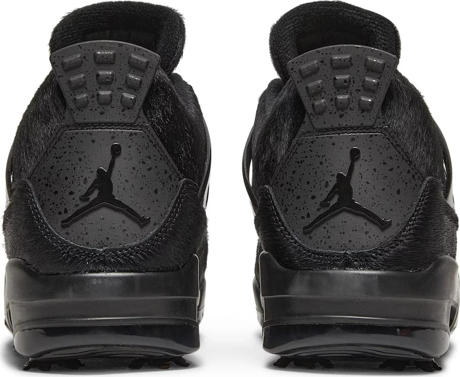 Air Jordan 4 Golf Black Cat трансформирует расцветку OG с обновленной конструкцией, предназначенной для игры на траве. Верхняя часть точно воссоздает оригинал 1989 года, выделяясь черным верхом из шерсти пони с тональной сеткой на четверти, черными люверсами TPU и брендингом Jumpman на тканом язычке. Второй логотип Jumpman украшает литой язычок на пятке. Отличительная мидсоль AJ4 дополнена видимым блоком Air-sole в пятке. Под ногами располагается полупрозрачная подошва с семью съемными шипами для оптимального сцепления.- Цвета: Black/Black/Black