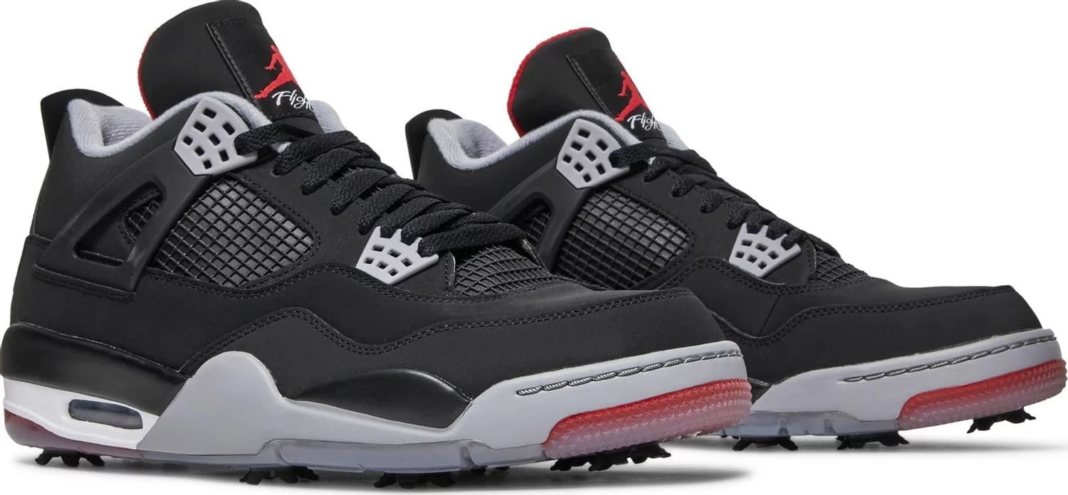 Air Jordan 4 Golf 'Bred' трансформирует расцветку OG с обновленной конструкцией, предназначенной для игры на траве. Верхняя часть точно воссоздает оригинал 1989 года, выделяясь черным нубуковым верхом с тональной сеткой на четверти, серыми люверсами TPU и красным брендингом Jumpman на тканом язычке. Второй логотип Jumpman украшает литой язычок на пятке. Отличительная мидсоль AJ4 дополнена видимым блоком Air-sole в пятке. Под ногами располагается полупрозрачная подошва с семью съемными шипами для оптимального сцепления.- Цвета: Black/Fire Red/Cement Grey/White