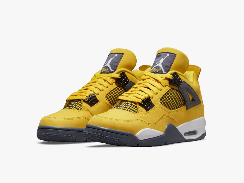 Модель Air Jordan 4 Retro «Lightning» выпуска 2021 года возрождает столь желанную расцветку, которая первоначально была выпущена в 2006 году. Ярко-желтый оттенок верха контрастирует с черной сеткой. Серые акценты располагаются на тканой биркой на язычке и логотипе Jumpman на пятке. Белая мидсоль из полиуретана с видимой амортизирующей подушкой Air и темно-серая резиновая подошва с рисунком «елочка» завершают дизайн.- Цвета: Tour Yellow/Multi-Color/Multi-Color/Dark Blue Grey