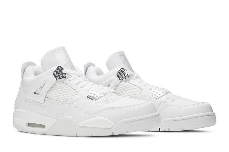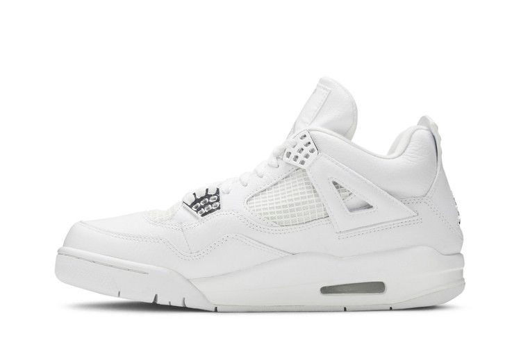 Air Jordan 4 'Pure Money' сфокусированы на простоте. Верхняя часть из первозданной белой кожи подчеркнута хромированными акцентами на люверсах и брендинге Jordan. Изначально модель была выпущена в 2006 году в сочетании с расцветкой "Черный кот", которая была полностью выполнена из черного нубука. Прозвище - это кивок в сторону Майкла Джордана во времена его карьеры, когда его джемпер всегда был чистыми деньгами.