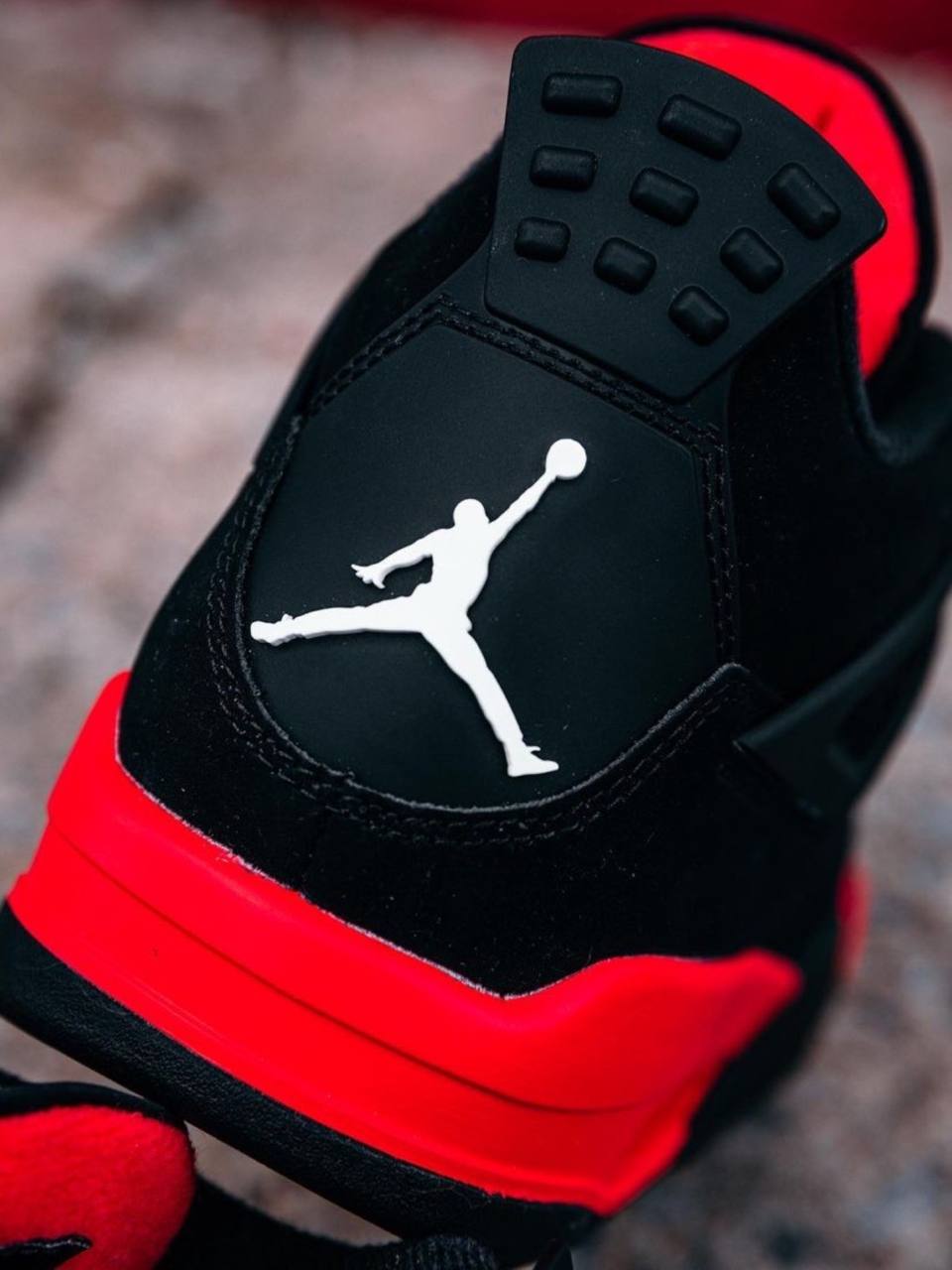 Модель Air Jordan 4 Retro "Red Thunder" имеет знакомую цветовую схему, напоминающую о желанной расцветке "Thunder", первоначально выпущенной в 2006 году, а затем перевыпущенной в 2012 году. Верхняя часть кроссовок выполнена из черного нубука с контрастными малиновыми вкраплениями вместо желтых акцентов Tour Yellow. Они расположены на литых люверсах, внутренней части язычка, четверти, горловине и мидсоли, под пяткой которой находится амортизирующая подошва Air. Брендинг Jumpman украшает язычок и пятку.