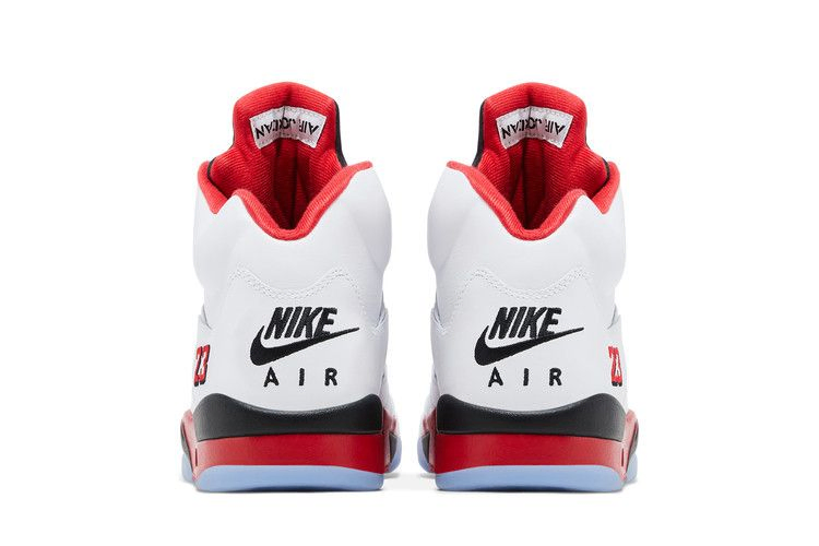 Выпуск 2025 года Air Jordan 5 Retro "Fire Red" возвращает к цветам OG, разработанным Тинкером Хэтфилдом и впервые выпущенным в 1990 году. Верх из белой кожи украшен сеткой на четверти и контрастными черными люверсами из TPU. Красный значок Jumpman выделяется на фоне черного язычка, а вышитая цифра "23" украшает боковую часть пятки. Классический брендинг Nike Air украшает заднюю часть пятки. Красная полиуретановая межподошва с черными деталями в виде акульих зубов и полупрозрачная резиновая подошва дополнены видимым блоком Air.
