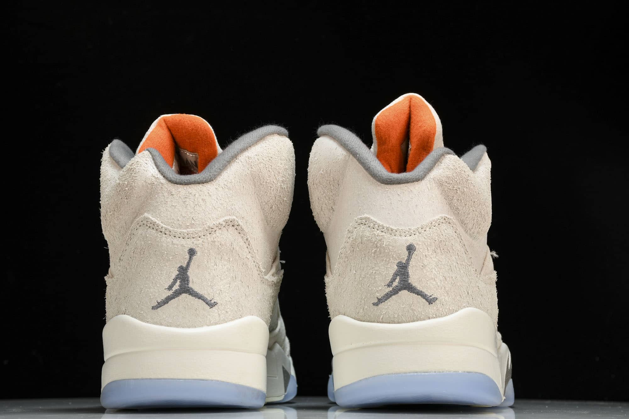 Air Jordan 5 Retro SE 'Craft' обновляет унаследованный силуэт с помощью нежной цветовой палитры и новой кремовой конструкции. Верхняя часть из замши и текстиля цвета Taupe украшена двухцветными шнурками и акцентирована полупрозрачной сеткой на четверть панели. Оранжевый текстиль украшает язычок в тон фирменному значку Jumpman, украшающему внешнюю сторону. Второй значок Jumpman украшает накладку на пятке в виде серой вышивки. Модель стоит на белой полиуретановой промежуточной подошве, украшенной деталями в виде акульих зубов и видимым блоком подошвы Air в пятке. Под ногами полупрозрачная резиновая подошва с рисунком "елочка", обеспечивающая превосходное сцепление с дорогой.- Цвета: Light Orewood Brown/Safety Orange/Flat Pewter/Sail