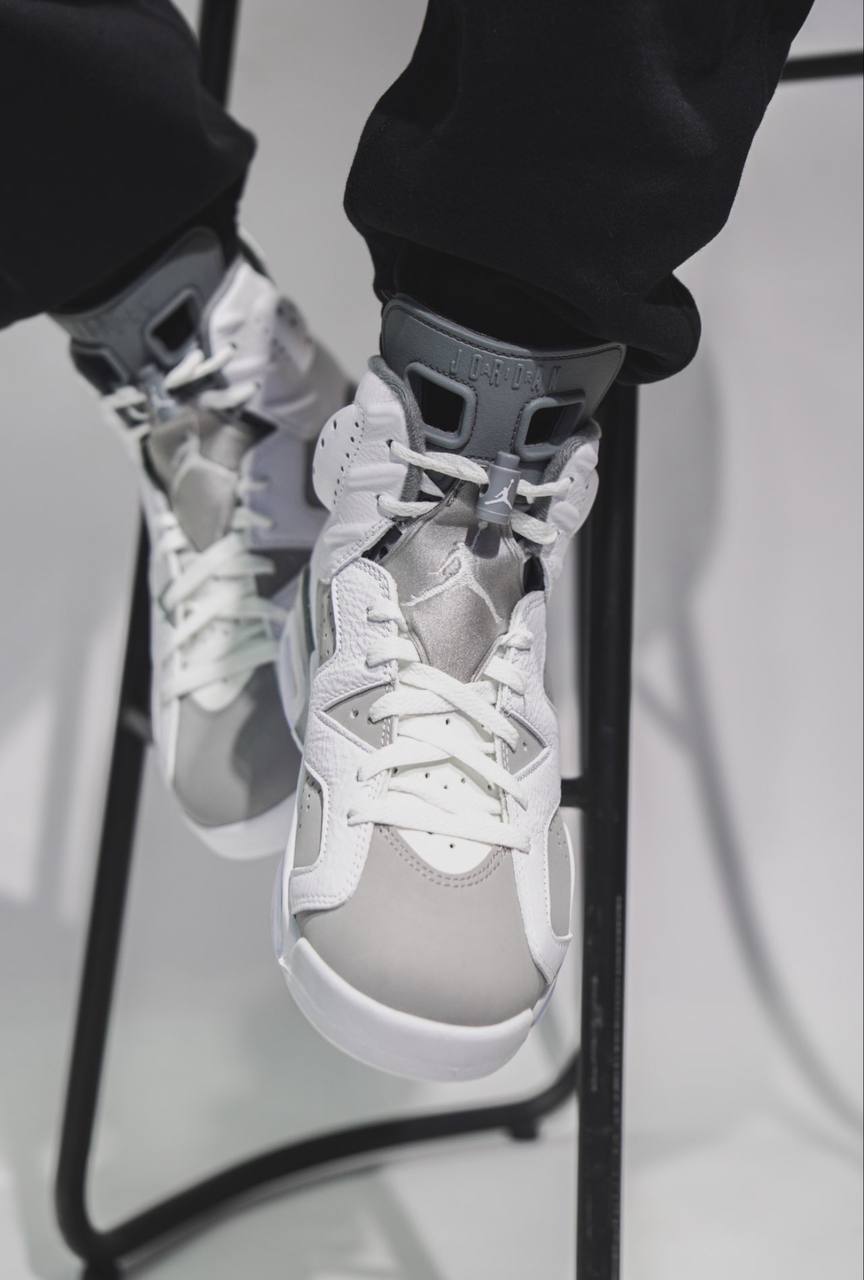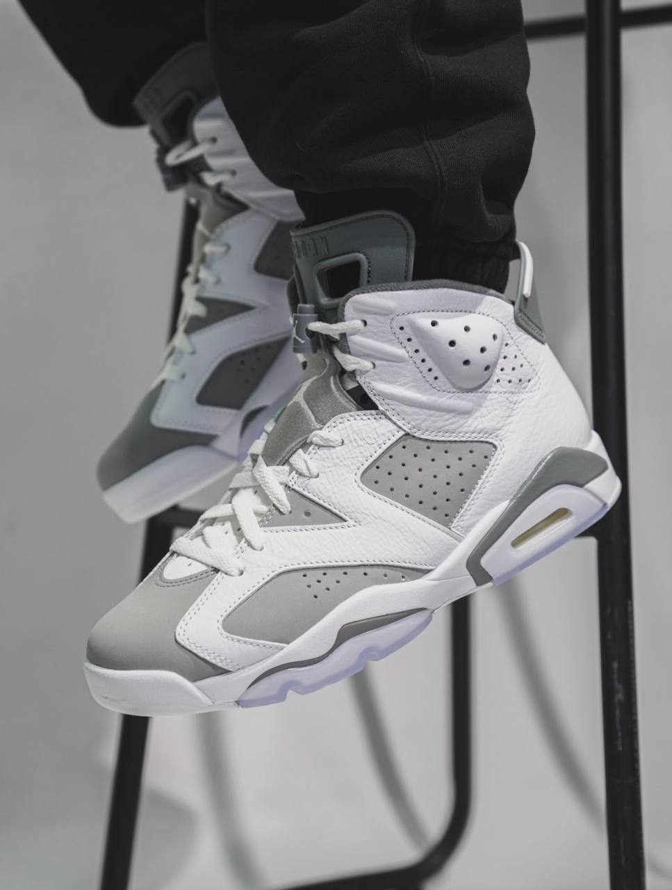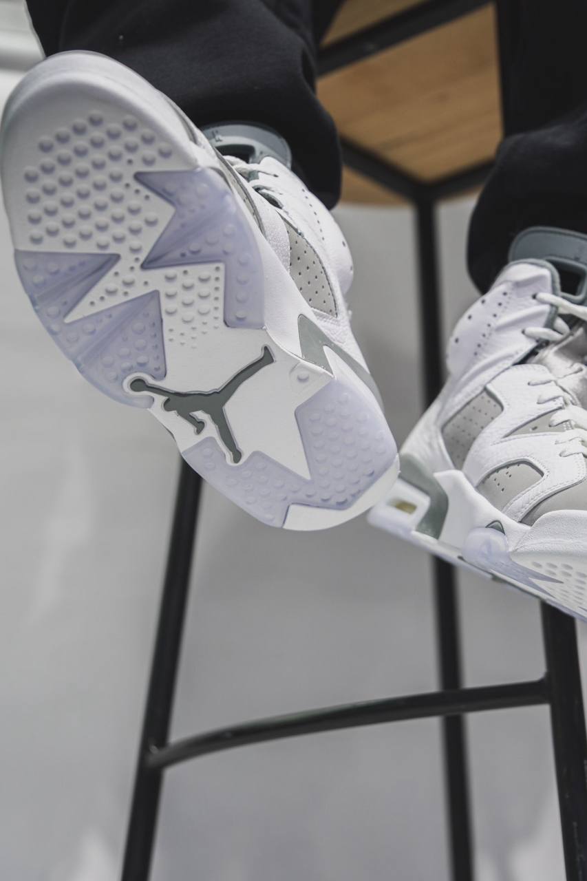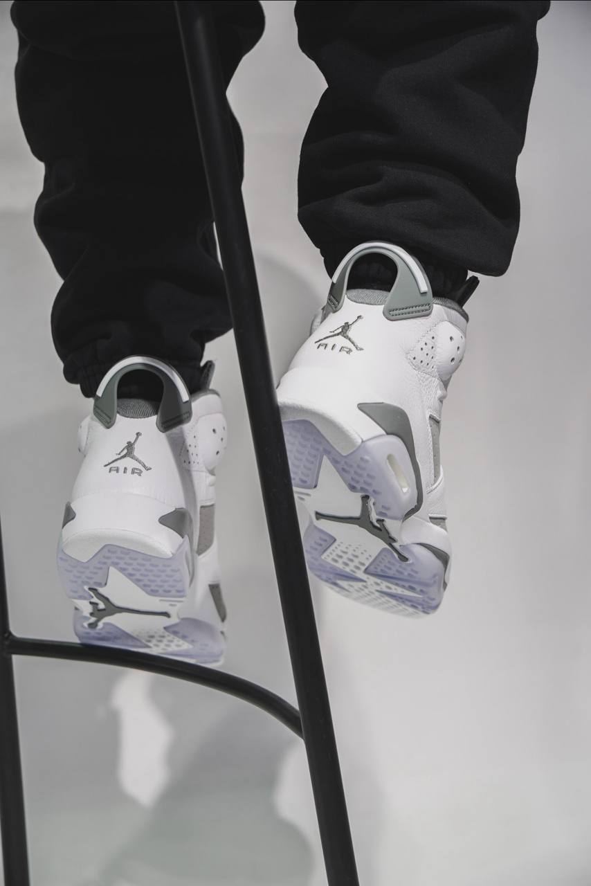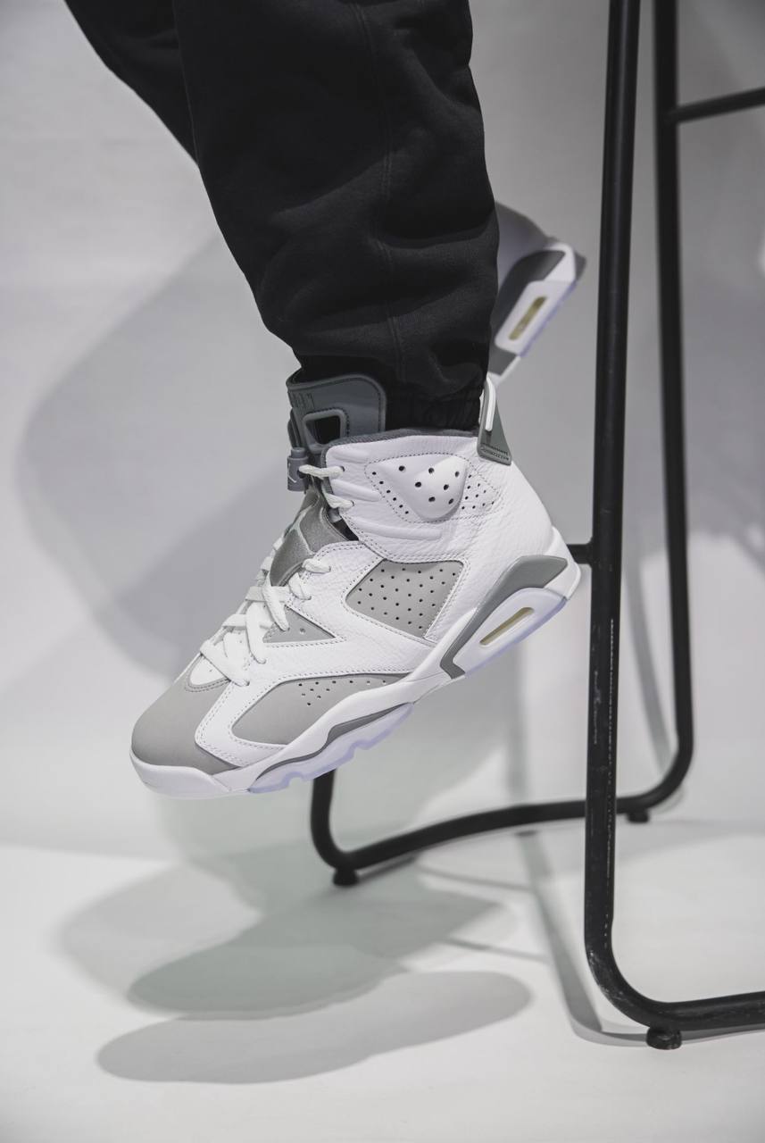 Модель Air Jordan 6 Retro "Cool Grey" придает классическому силуэту, который носил Майкл Джордан, завоевавший первый из своих шести чемпионских титулов в НБА, свободные нейтральные тона. Динамичные линии кроссовок подчеркивает композиция верха, состоящая из серой основы из нубука и кожаных накладок строгого белого цвета. Брендинг Jumpman украшает крышку шнурков и заднюю часть пятки, на которой вышита надпись "AIR". Легкая амортизация обеспечивается полиуретановой промежуточной подошвой с видимым блоком Air-sole в пятке и полупрозрачной резиновой подошвой под ногами.