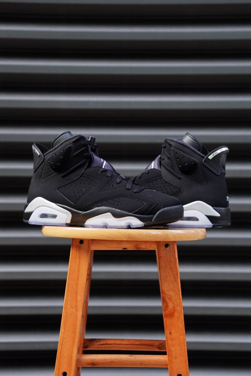 Модель Air Jordan 6 Retro "Metallic Silver" имеет знакомый дизайн, который ранее был представлен на модели Air Jordan 6 Low "Chrome" 2015 года. Верхняя часть выполнена из цельного черного нубука с серебристым брендингом Jumpman на защите шнурков. Стандартные детали AJ6 остались нетронутыми, включая язычок с окошком, фиксаторы шнурков и пятку со спойлером. Мид-топ установлен на черную полиуретановую промежуточную подошву, украшенную серебристыми металлическими деталями и поддерживаемую полупрозрачной резиновой подметкой.