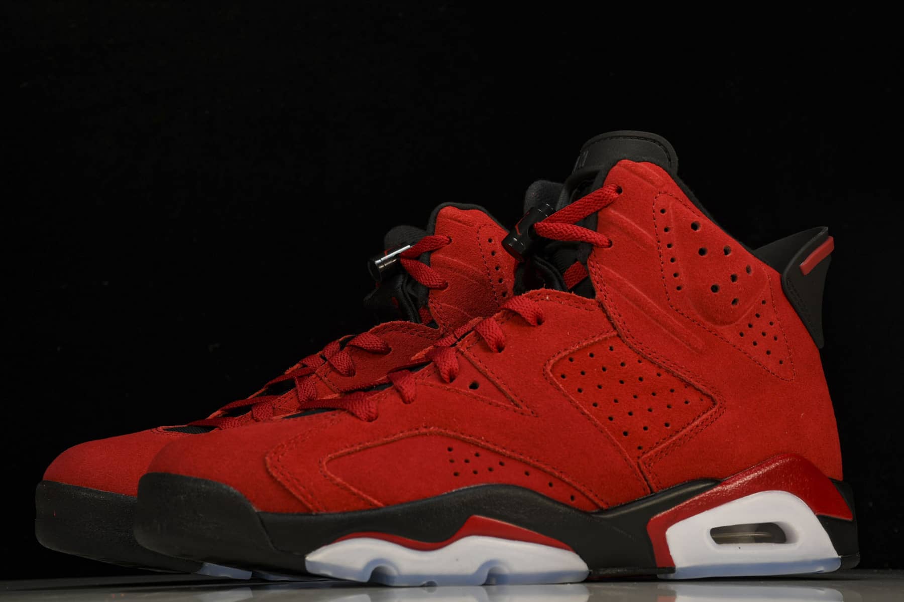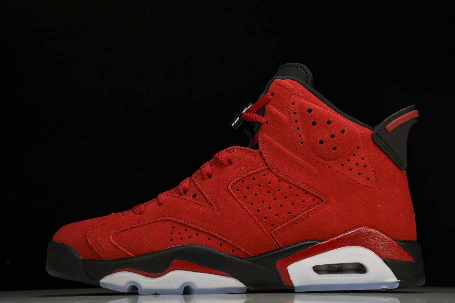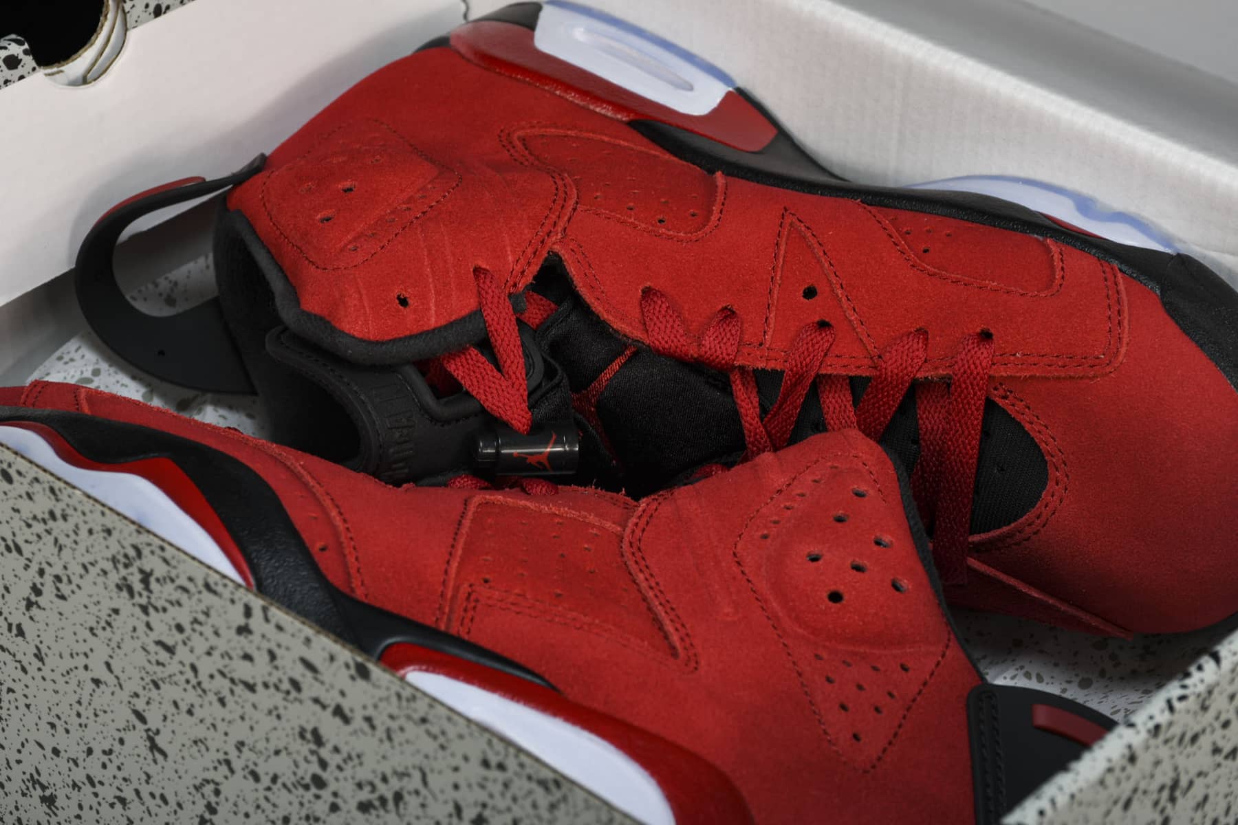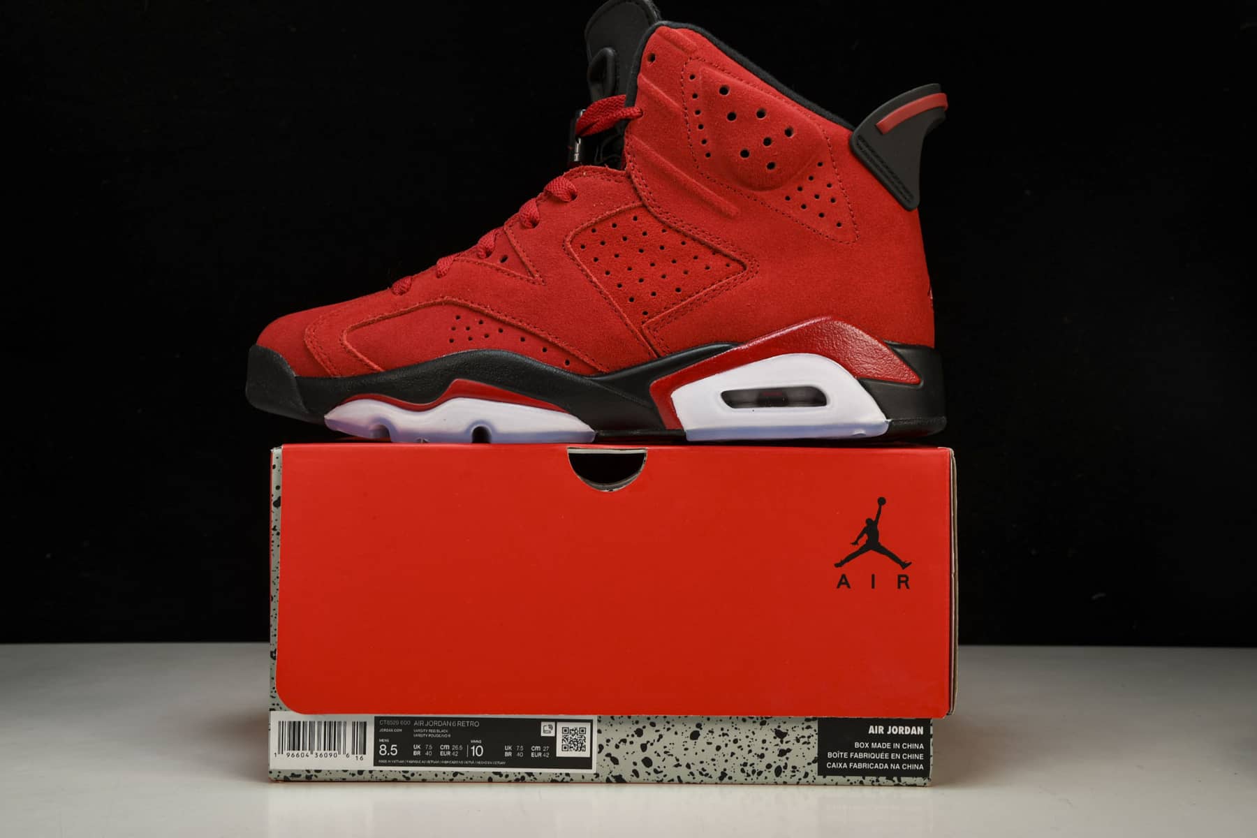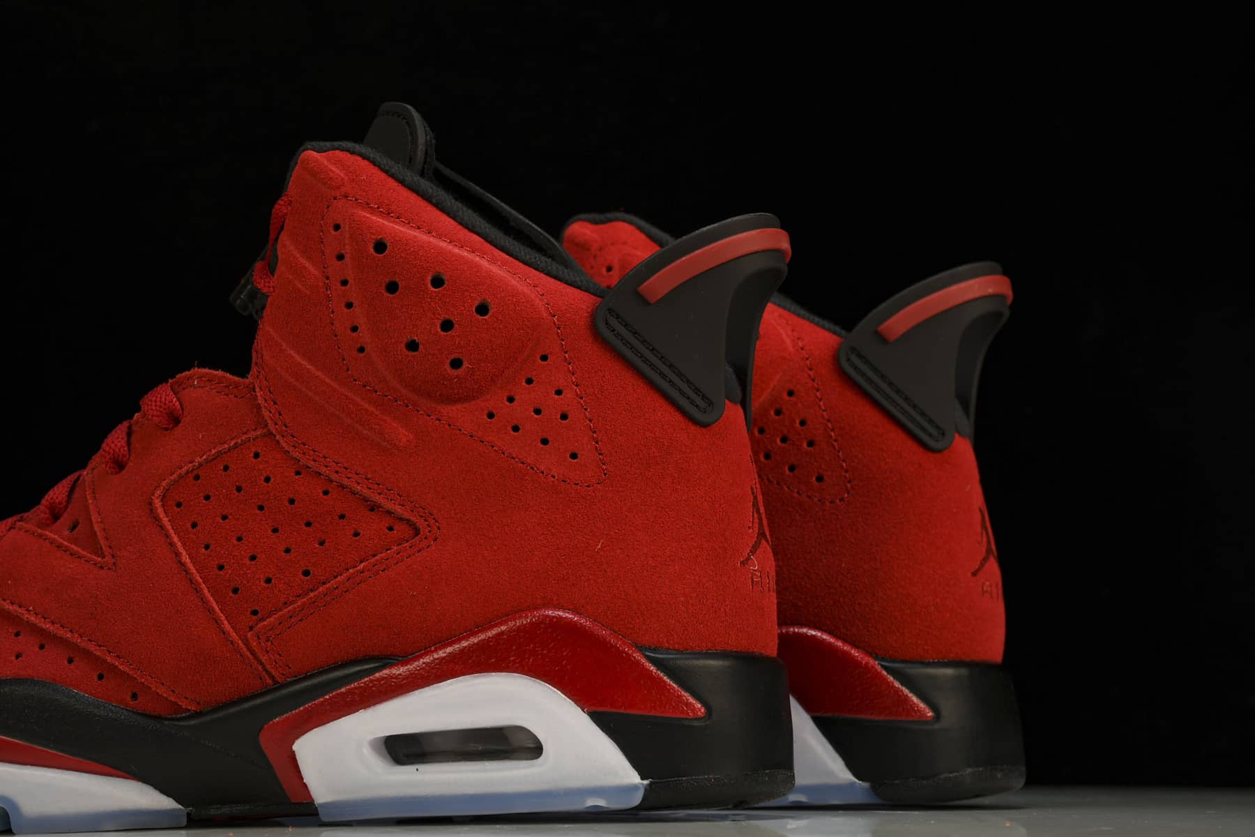 Модель Air Jordan 6 Retro "Toro Bravo" имеет смелую однотонную отделку, вдохновленную одноименной моделью Air Jordan 5, которая вышла в 2009 году в составе набора Raging Bull Pack. В силуэте чемпионских кроссовок используется малиновый замшевый верх, контрастирующий с черными акцентами на язычке, подкладке воротника и пятке в виде спойлера. Перфорированные детали обеспечивают улучшенную воздухопроницаемость, а плотная внутренняя вставка обеспечивает надежную и комфортную посадку. Легкая амортизация обеспечивается двухцветной полиуретановой промежуточной подошвой, оснащенной видимым блоком Air-sole в пятке и подкрепленной полупрозрачной резиновой подметкой.- Цвета: Varsity Red/Black