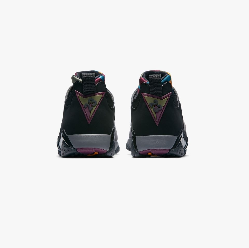 Отдавая дань уважения оригинальной цветовой гамме Bordeaux Air Jordan 7s, Nike выпустила версию с низким верхом в этом осеннем обновлении 2018 года. Модель Air Jordan 7 Retro Low NRG 'Bordeaux' отличается верхом из нубука Light Graphite с черными накладками из нубука и перфорацией вдоль средней части стопы для воздухопроницаемости. Штрихи дизайна включают разноцветные геометрические узоры на внутренней неопреновой подошве, логотип «23» на пятке, акценты бордо на воротнике и драгоценные черные акценты на мидсоли.- Цвета: Black/Light Graphite-Midnight Fog-Bordeaux