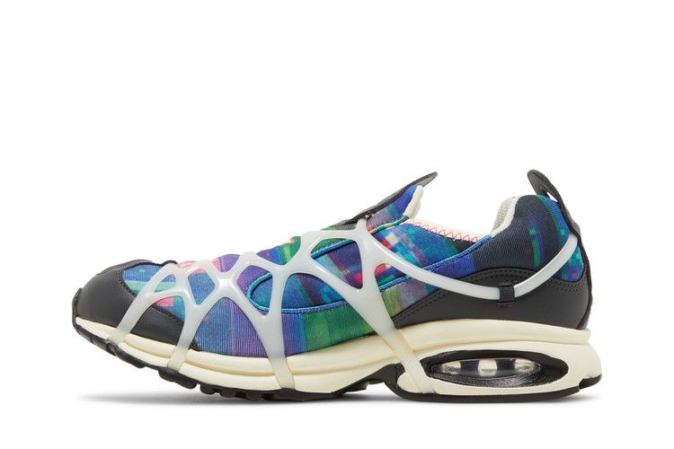 Nike Air Kukini "Pixel" - это ретро-модель 1999 года в уникальном дизайне, отдающем дань уважения винтажным видеоиграм. Многоцветная пиксельная графика украшает эластичный текстильный верх, укрепленный черными кожаными накладками на носке и пятке. Вместо традиционных шнурков в кроссовках используется система поддержки из светящегося в темноте TPU. На заднике красуется логотип Nike, а на боковой стороне пятки - ряд из пяти точек, что свидетельствует о проекте Alpha Project, прекратившей свое существование инновационной программе Nike. Белая межподошва из пеноматериала украшена заметным блоком Max Air в пятке, обеспечивающим мягкую посадку.