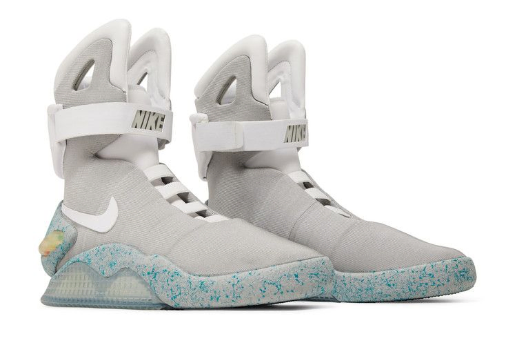 Увековеченные в фильме 1989 года "Назад в будущее II", кроссовки Nike Mag были выпущены в сентябре 2011 года. Несмотря на отсутствие самозашнуровывающейся шнуровки, эстетически они полностью соответствуют своему киношному аналогу, дополняясь электролюминесцентным логотипом Nike на ремешке и светящимися светодиодными матрицами на подошве и пятке. Тираж 2011 года был ограничен 1500 парами и выпущен через благотворительные аукционы eBay, где вырученные средства пошли непосредственно в Фонд Майкла Дж. Фокса, занимающийся поиском лекарства от болезни Паркинсона.- Модель: Кроссовки Nike Mag
