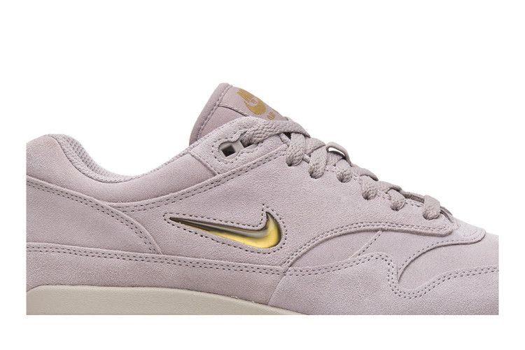 Модель Air Max 1 Premium SC "Particle Rose Jewel", выпущенная в рамках пакета Nike "Particle Rose Pack" ко Дню святого Валентина 2018 года, имеет верх из мягкой замши с контрастным золотым логотипом Swoosh на боковых панелях. Модель также может похвастаться частично открытым полноразмерным блоком Air Max на кремовой промежуточной подошве, подходящей системой шнурков Particle Rose, золотым брендингом на язычке и резиновой подошвой.