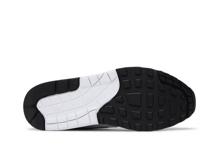 В модели Nike Air Max 1 "University Blue" белая сетчатая основа сочетается с накладками из синтетической замши бледно-серого цвета на заднике и пятке. Свуш выполнен в пастельных голубых тонах, сочетающихся с брызговиком, внутренней подкладкой и литыми люверсами. Белая полиуретановая подошва имеет классическую форму танкетки и видимую амортизацию Air-sole в пятке. Подошва из вафельной резины с гибкими канавками обеспечивает естественный ход.