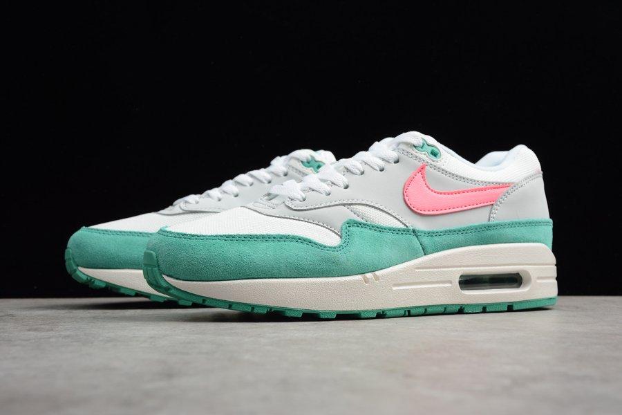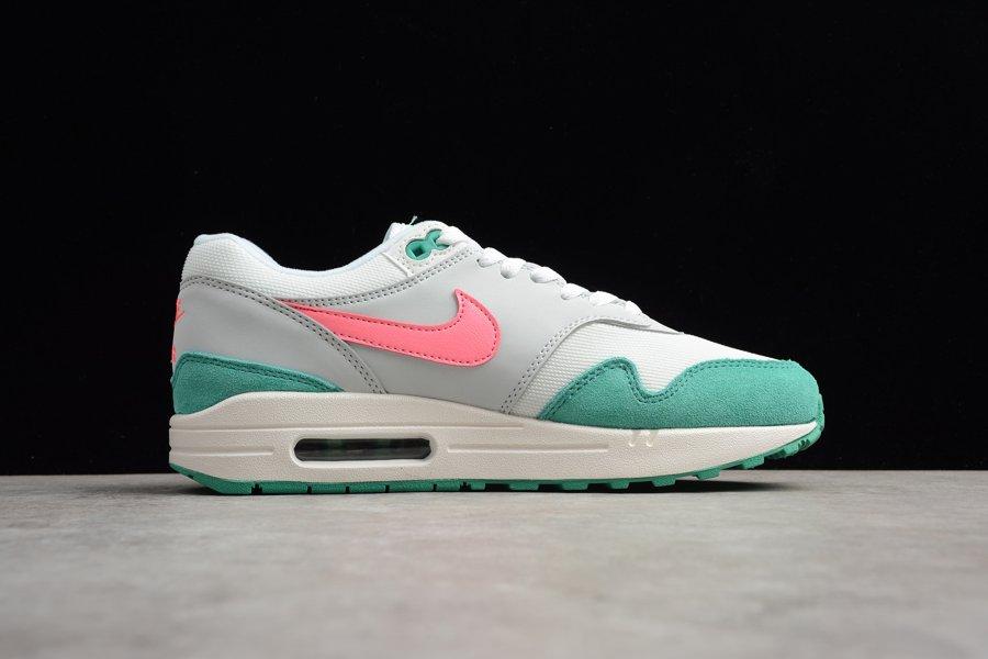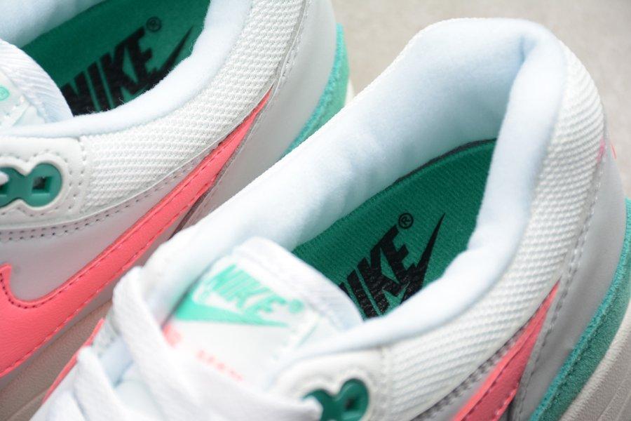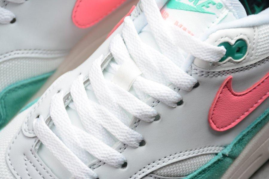 Air Max 1 Watermelon - новая креативная расцветка, гармонично сочетающая в себе коктейль из летних, свежих цветов. Мятный зелёный отлично разбавляет белую базу кроссовка, а сочный розовый создаёт сильный акцент на логотипе, и приковывает к нему внимание. Кожаная верхняя часть выполнена в белом цвете, а яркая зелёная полоска с отделкой из замши разбавляет кроссовок, делая его более выразительным. Данная расцветка идеально подойдёт любителям серии Air Max 1, которые ценят свежесть и уникальность в образе.- Цвет: Суммит-белый, Kinetic Green-Pure Platinum-Sunset Pulse