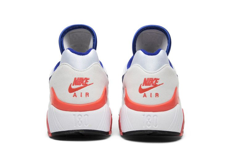 Модель Air Max 180 вернулась в 2018 году после пяти лет пребывания в тени. Модель Air Max 180 'Ultramarine' 2018 года отличается более изящным силуэтом с легким верхом из кожи и сетки белого цвета с накладками для дополнительного комфорта и поддержки. Кроссовки также могут похвастаться акцентами Sail и Ultramarine на подкладке и брендинге Swoosh, а также оранжевыми деталями на язычке, пятке и вокруг частично открытого блока Air Max. Кроме того, кроссовки оснащены полноразмерной подошвой из полиуретана и черной резиновой вафельной подошвой для дополнительного сцепления.