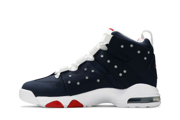 Выпуск 2021 года Nike Air Max 2 CB '94 'USA' возвращает патриотическую расцветку фирменных кроссовок Чарльза Баркли, ранее выпущенных в 2015 году. Внутренний рукав, напоминающий Huarache, улучшает посадку верха, выполненного из нубука цвета обсидиана с контрастным красным брендингом Nike на боковой панели и пятке. Мид-топ опирается на контрастную белую межподошву из пеноматериала, оснащенную видимым блоком Max Air под пяткой и акцентированную зазубренными красными пиками на боковине.