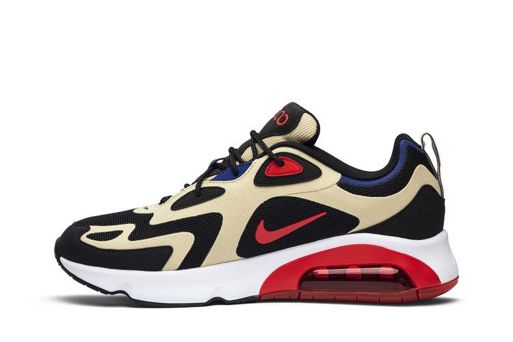 Модель Air Max 200 "Team Gold" была представлена в июле 2019 года с многоцветным мотивом, подчеркивающим ее вдохновленный энергией дизайн. Навеянная колебаниями природных движений Земли, замшевая накладка премиум-класса покрывает дышащую черную сетку в волнистой конфигурации, напоминающей текущую лаву и рябь волн. Под стопой находится сверхкрупный блок Max Air, на 200% превышающий традиционные размеры, обеспечивающий мягкий, упругий ход и длительную защиту от ударов.